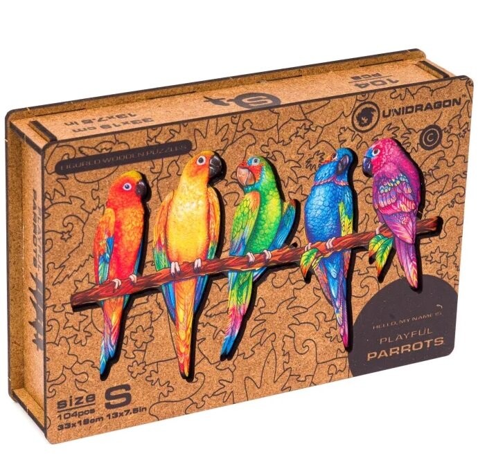 Деревянный пазл «Игривые попугаи» 100 деталей. Unidragon