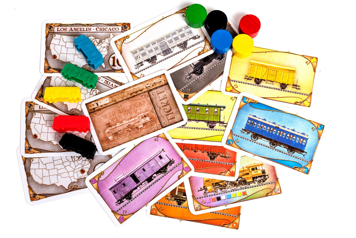Мы садимся на поезд: США В начале игроки получают набор билетов (заданий), которые им необходимо выполнить — например «Сан-Франциско — Нью-Йорк» или «Лос-Анджелес — Атланта». В ходе игры они строят маршруты из вагонеток на карте США, но два человека не могут путешествовать по одному и тому же маршруту (если нет двойной линии). Игра требует стратегии и тактического мышления. который позволит вам наилучшим образом выполнить поставленные задачи, блокировать противников и перехватывать лучшие маршруты. При этом здесь очень простые правила, которые можно объяснить всего за несколько минут!