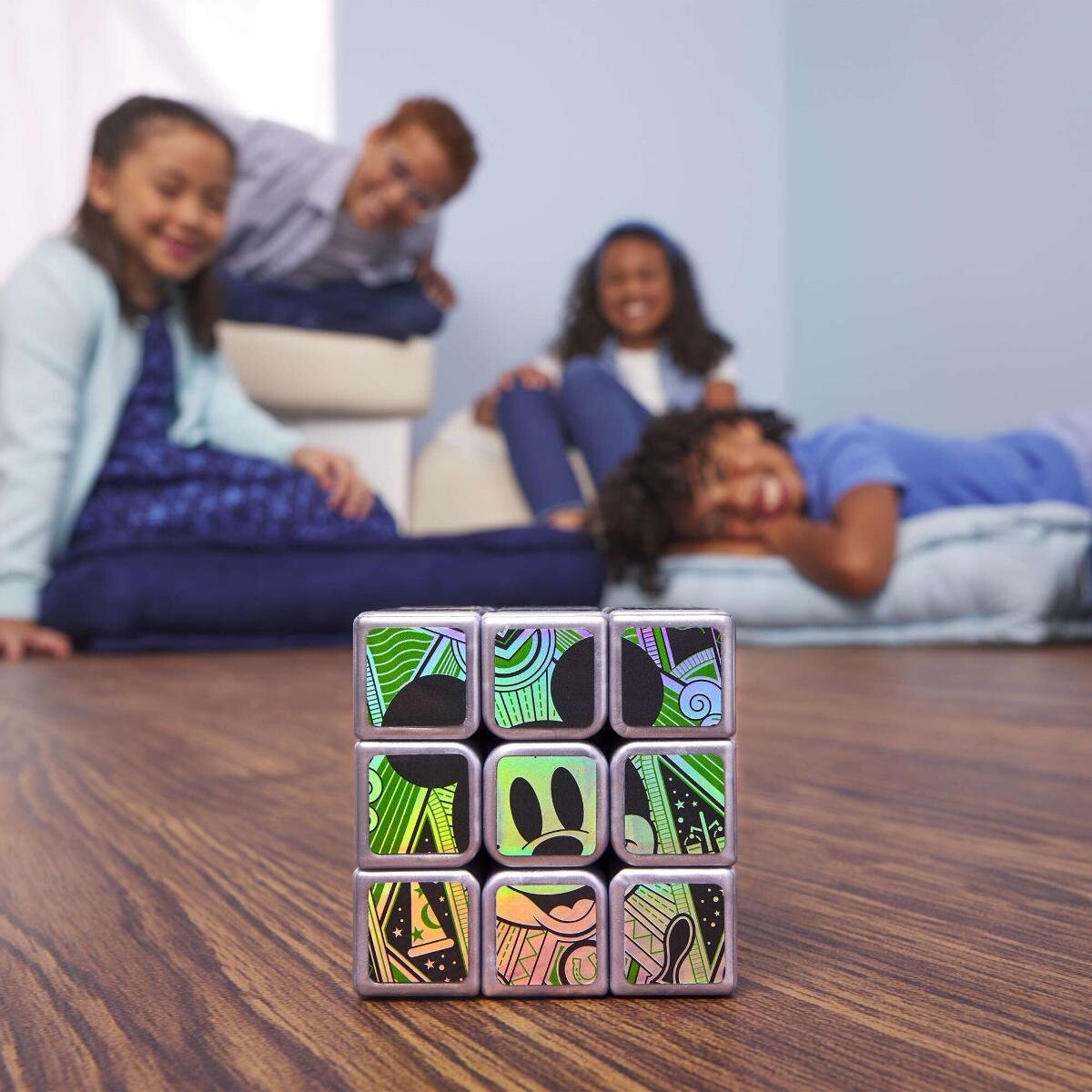 Этот уникальный куб имеет базовую квадратную компоновку 3 x 3 и металлические наклейки с персонажами Диснея.