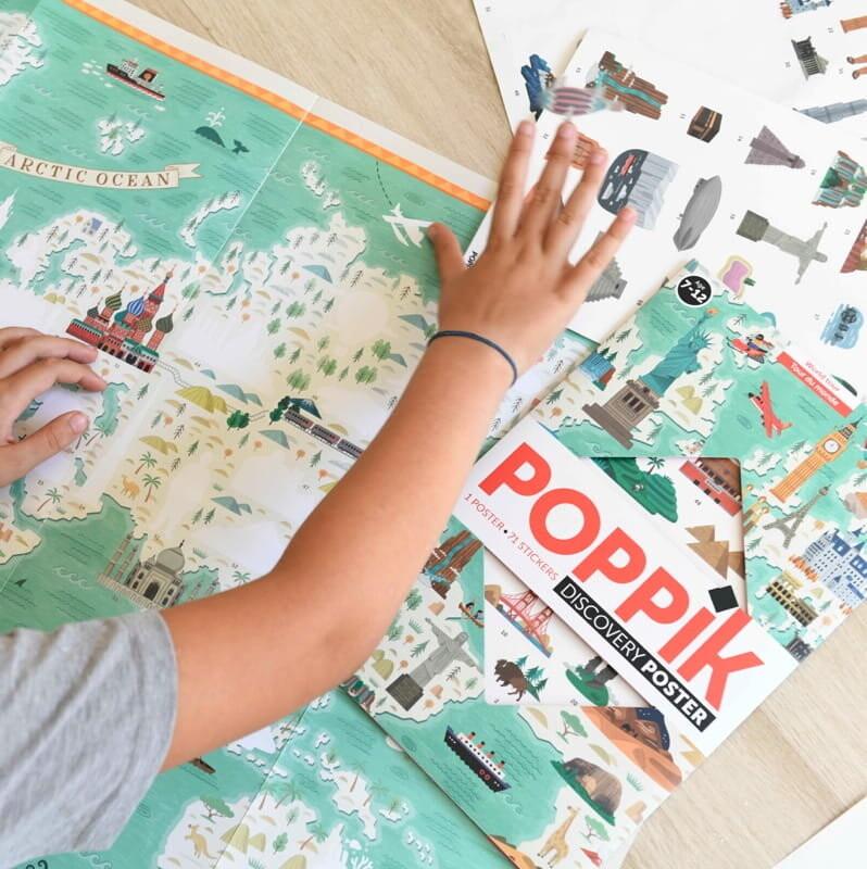 На плакате представлены несколько десятков самых известных памятников мира, а также несколько необыкновенных природных мест. Благодаря этим наклейкам и этому плакату дети откроют для себя чудеса пяти континентов: Биг-Бен, Великую Китайскую стену, Мачу-Пикчу и даже Барьер Росса в Антарктиде.