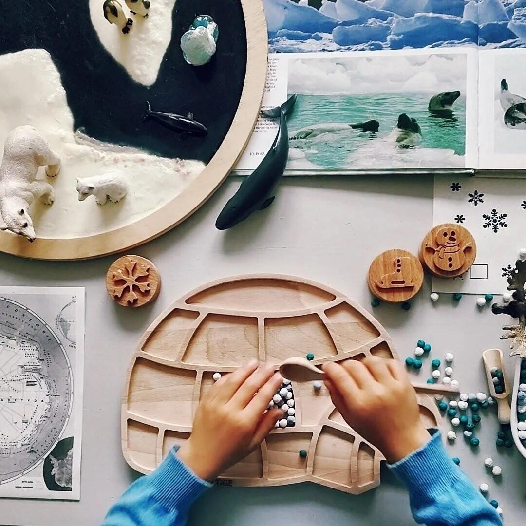 Такая сенсорная игрушка отлично подойдет для зимних сенсорных игр и тренировки маленьких ручек. Он также подходит для обсуждения тем, связанных с Антарктидой, Арктикой или зимой. Помимо сенсорного иглу, вы также можете использовать штампы «Зимняя сказка» для игр на зимнюю тематику. снеговик или, например, зимняя шапка.