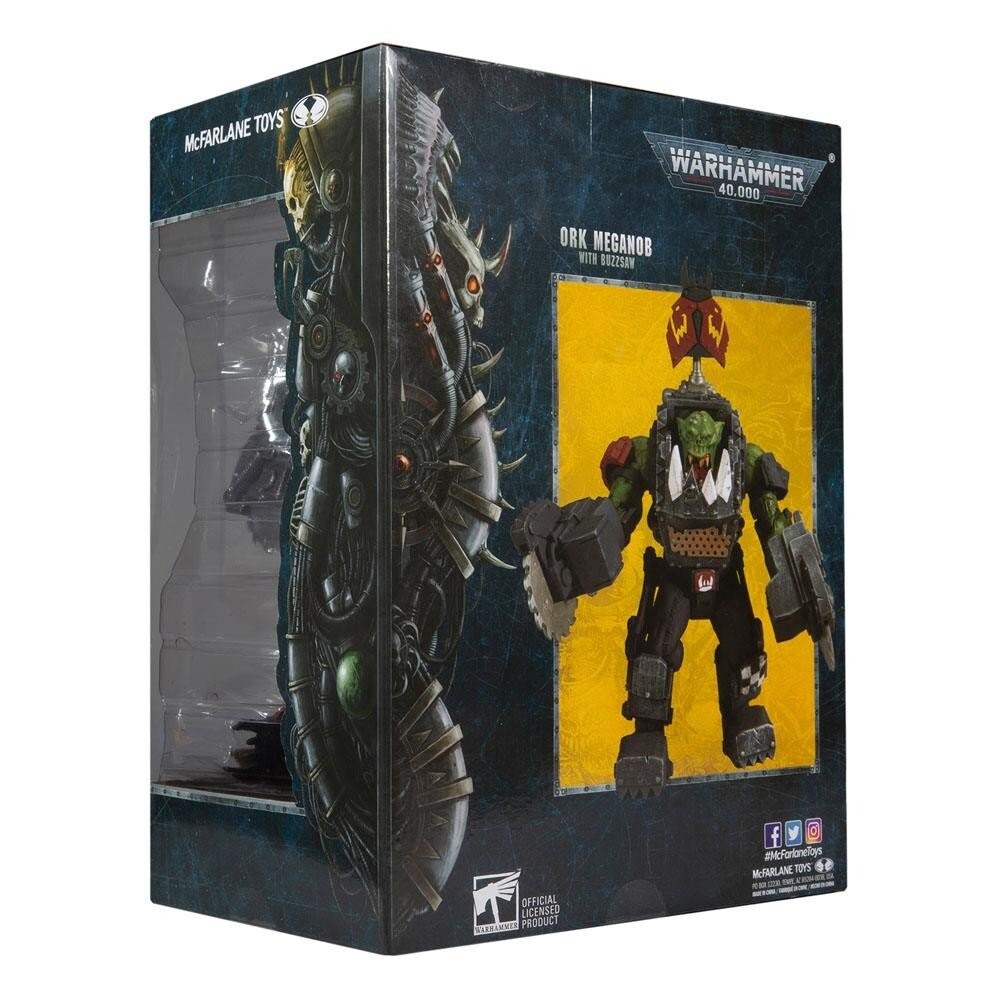 Фигурка Warhammer 40k - Орк Меганоб с бензопилой, высотой примерно 30 см. Его подготовил и опубликовал уважаемый производитель коллекционных фигурок McFarlane Toys.