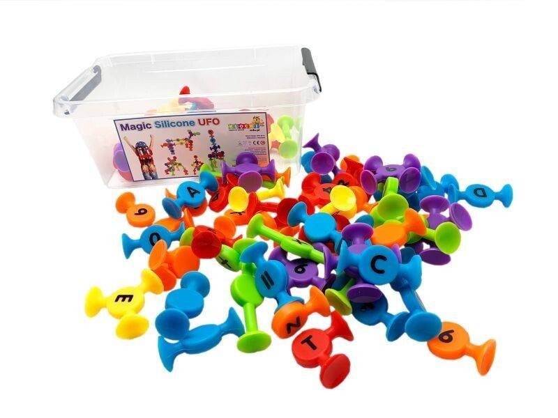 Новый! Силиконовые кубики на присосках, из которых маленький строитель сможет создавать фантастические, необычные, красочные конструкции. В наборе целых 80 элементов, все упакованы в прочный контейнер с ручкой. Отличная идея для подарка! Силиконовые блоки НЛО 80 шт.