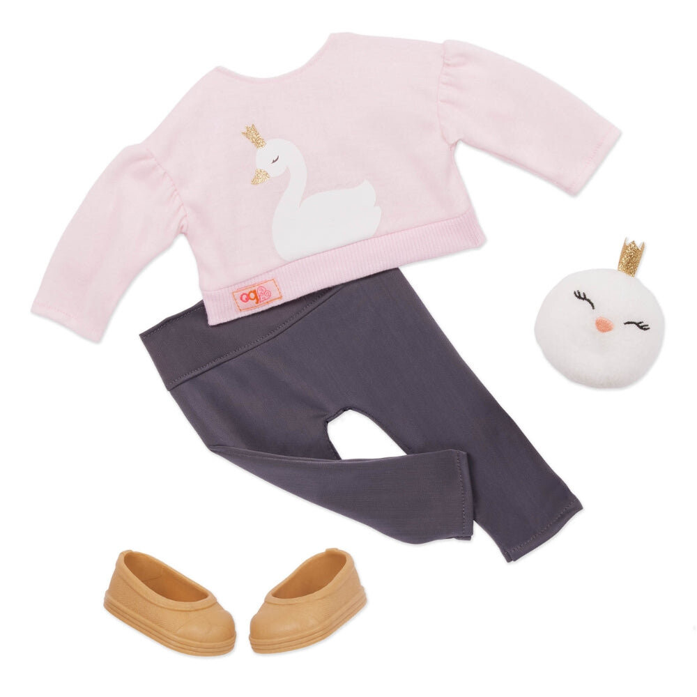 Красивая детская кукла Элиана с тонкими розовыми бликами внизу и плюшевая мягкая игрушка от Our Generation.