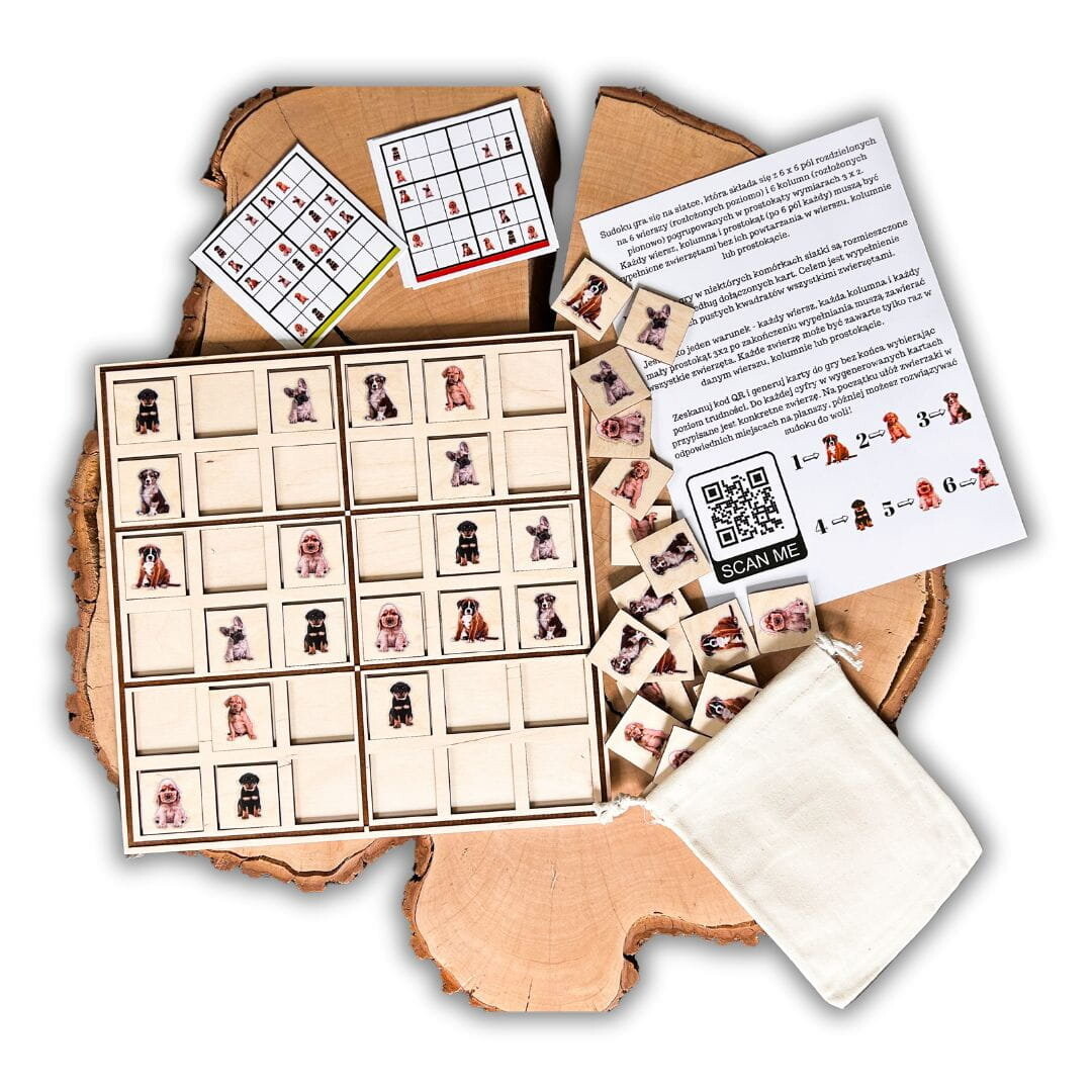 Мы представляем уникальную деревянную игру-судоку, в которой традиционные цифры заменены очаровательными изображениями собак! Эта инновационная обучающая игра идеально подходит как для детей, так и для взрослых. Она предлагает увлекательное развлечение, развивающее навыки логического мышления.