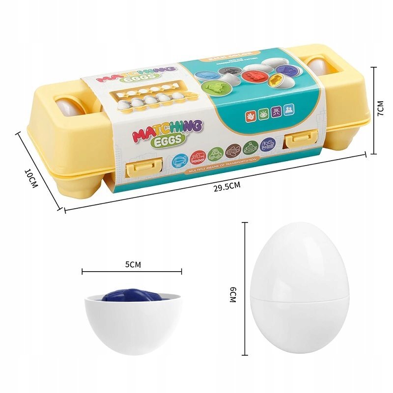 Контейнер, в котором размещаются развивающие элементы, очень легкий . Даже самые маленькие дети смогут без проблем пользоваться им и брать его с собой в путешествие. Кроме того, он имеет удобные закрывающиеся ручки, что облегчает транспортировку. РазмерыЯйца: