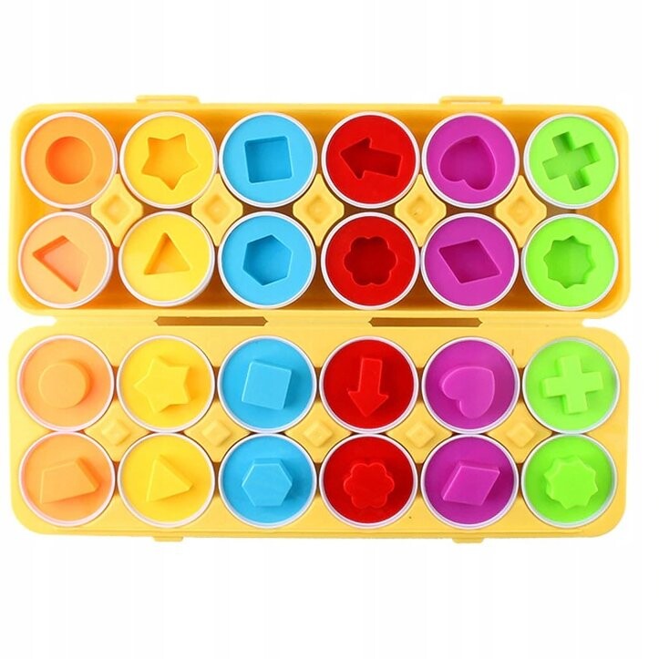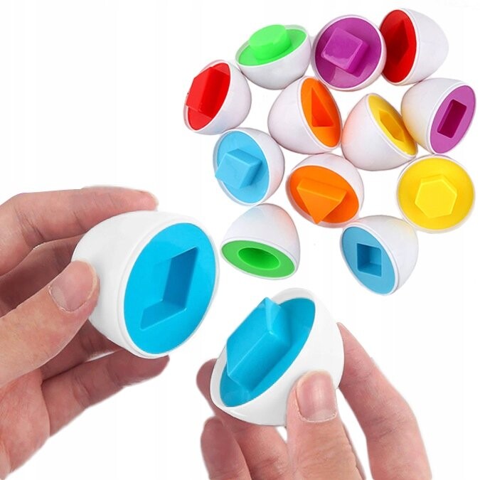Игра предполагает соединение двух половинок формой и цветом. Вот так чтобы яйцо закрылось.Учиться весело и весело