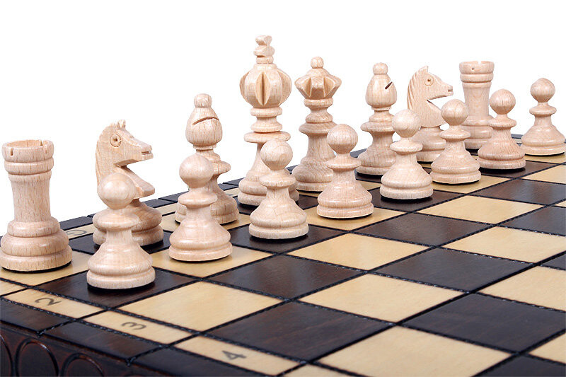 Это один из комплектов олимпийских шахмат, которые есть в нашем предложении. Он идеально подходит в качестве дорожного набора шахмат и легко помещается в рюкзак или сумку. Фигурки выполнены в классическом стиле из твердой древесины граба.