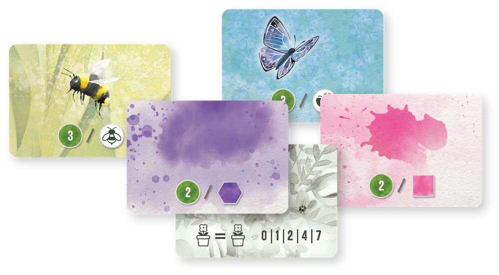 - В игре вы можете собрать 5 видов цветов 5 разных цветов. Многие цветы также имеют дополнительную особенность в виде одного из пяти насекомых. На основе этих характеристик начисляются очки за карты букетов, желаний и наград.