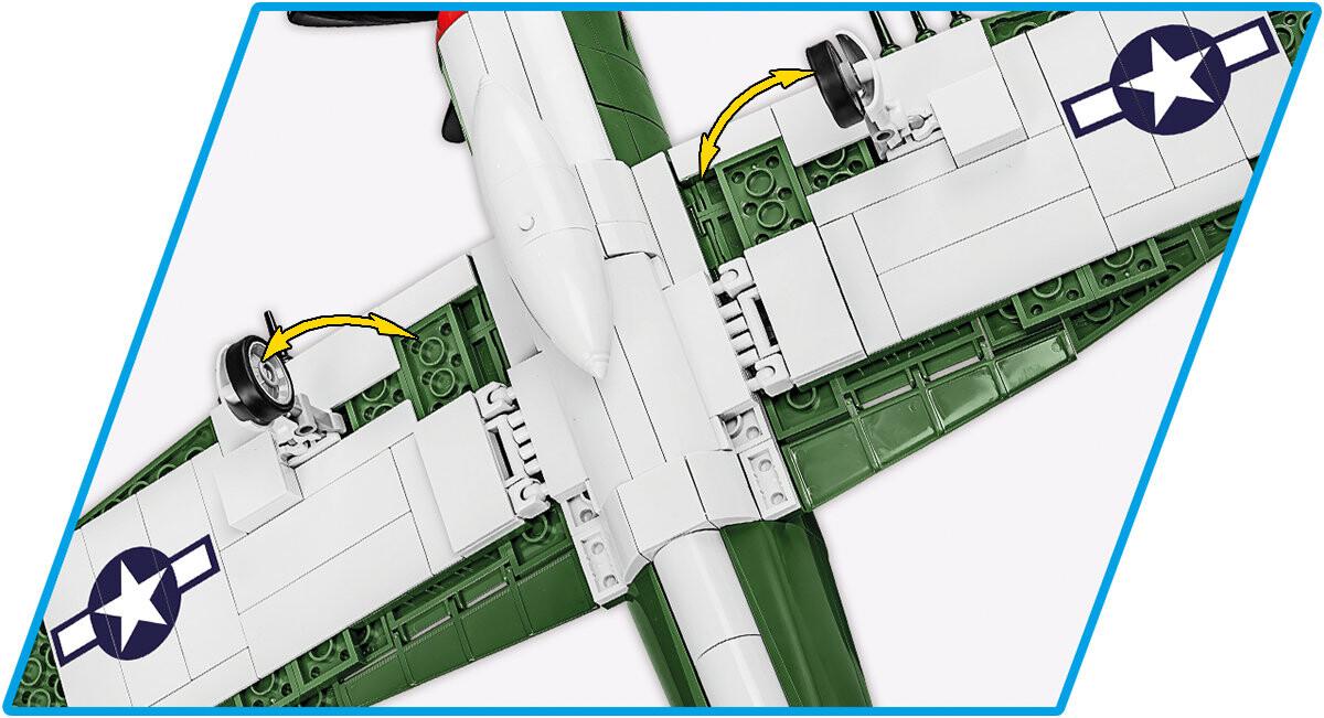 Набор Executive Edition с потрясающим самолетом P-47 Thunderbolt пополнился моделью прицепа-цистерны и фигуркой механика. Это следующий элемент после диспетчерской вышки (COBI-3042). с помощью которого вы сможете начать строить свой собственный полевой аэропорт! Блочная модель самолета разработана в масштабе 1:32, соответствующем остальной коллекции. Модель содержит качественные принты, которые не стираются в процессе использования. С их помощью воссоздана историческая картина «Маленький начальник» и другие детали самолета. Модель имеет множество движущихся элементов, таких как вращающиеся колеса с резиновыми шинами, подвижный пропеллер и элероны. Фигурку пилота, входящую в набор, мы можем разместить в салоне! Это отличная модель для всех любителей истории. авиация и коллекционеры. Весь набор дополняется подставкой из кубиков и кубиком с напечатанным на нем названием самолета.