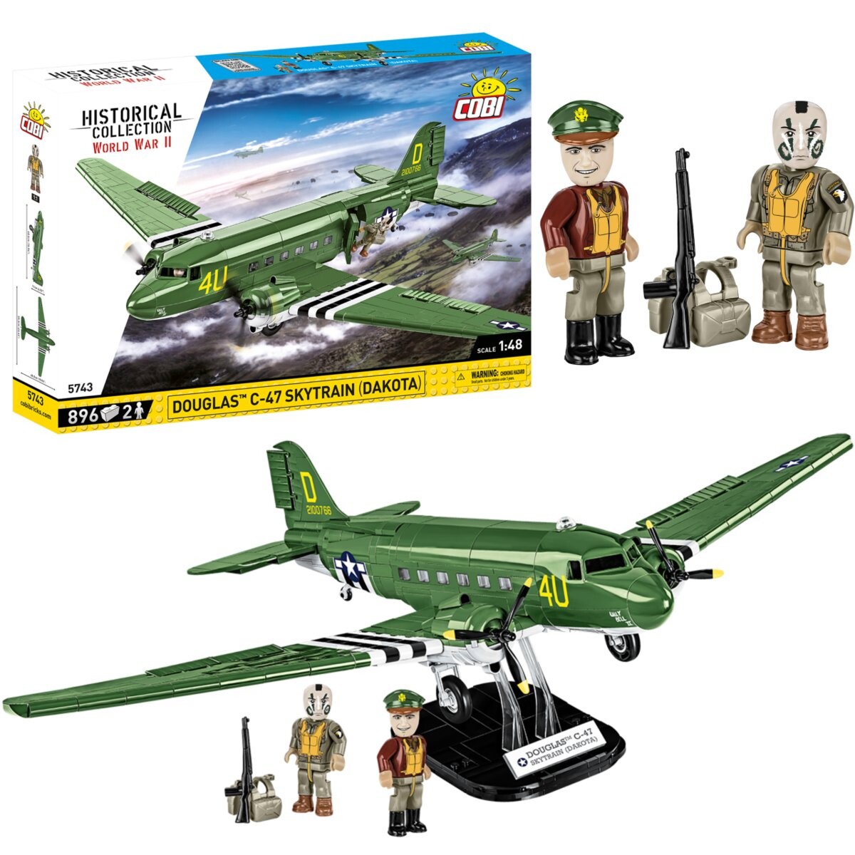 Модель строительного блока C-47 Skytrain из серии «Историческая коллекция времен Второй мировой войны» представляет собой точную копию этого легендарного транспортного самолета. Модель в масштабе 1:48, состоящая из 896 высококачественных компонентов, впечатляет размерами: 40,5 см в длину, 59,5 см в ширину и 11 см в высоту. Благодаря тщательной конструкции модель отражает детали и пропорции оригинального самолета. обеспечение полного воссоздания атмосферы Великой Отечественной войны.РеалистичностьМодель C-47 Skytrain имеет движущиеся элементы, которые добавляют реалистичности во время игры и презентации. Поворотные колеса с резиновыми шинами, подвижные пропеллеры и подкрылки, а также открывающиеся двери делают модель более интерактивной и динамичной. Благодаря этим функциям вы можете менять позиции и моделировать различные действия, связанные с воздушным транспортом. Две фигурки - пилот и десантникВ набор входят две фигурки американских солдат: пилот и десантник из 101-й воздушно-десантной дивизии «Кричащие орлы». Каждая фигурка имеет свои уникальные особенности и одета в характерную военную форму. Это добавляет дополнительный реализм и позволяет создавать сцены, связанные с посадкой и воздушным транспортом. Табличка и подставкаВ комплект также входит табличка с названием самолета, что добавляет аутентичности и облегчает идентификацию модели. Кроме того Усиленная блочная подставка с прозрачными штырями обеспечивает устойчивое и привлекательное представление готовой модели в коллекции или на полке. Долговечность и безопасностьБлочная модель C-47 Skytrain изготовлена из высококачественных элементов компанией с более чем 20-летней традицией. Кубики соответствуют стандартам безопасности детских товаров, обеспечивая долговечность и безопасную игру. Отпечатки на блоках не деформируются и не выцветают даже при интенсивной эксплуатации, что гарантирует долговечность качества и эстетичности модели. Легко и интересно создаватьБлочная модель C-47 Skytrain поставляется с четкими и интуитивно понятными инструкциями, основанными на рисунках и значках. Это облегчает процесс конструирования как для младших, так и для старших моделистов. Пошаговая инструкция проведет вас через все этапы сборки модели. обеспечение удовлетворительного творческого опыта и радости от законченного проекта. Большая коллекция и история строительстваБлочная модель C-47 Skytrain из серии «Историческая коллекция времен Второй мировой войны» — это не только набор для сборки, но и инструмент для создания истории и оживления прошлого. Благодаря этой модели вы сможете воссоздать и увидеть ключевые события, связанные с воздушным транспортом во время Второй мировой войны. Строительные блоки COBI позволяют вам шаг за шагом открывать для себя историю и создавать свои собственные уникальные сцены. Это отличный вариант для коллекционеров и любителей истории. которые хотят возродить прошлое посредством блочного моделирования. Характеристики продукта: