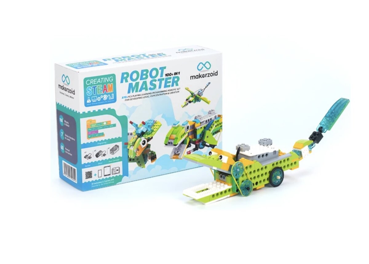 Makerzoid Robotmaster Standard — образовательный программируемый робот для детей и подростков. Набор, содержащий более 370 блоков, позволяет построить более 100 различных моделей. Все модели разработаны группой экспертов, что обеспечивает широкие знания STEAM. Все это в интересной и увлекательной форме.