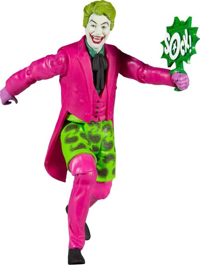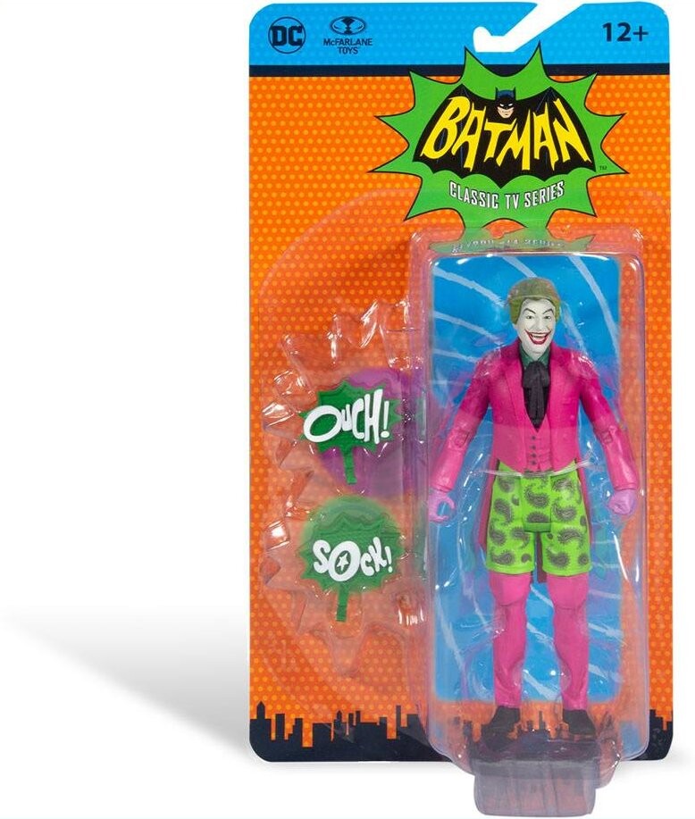 DC Retro Batman 66 — фигурка Джокера в плавках, высота примерно 15 см. Его подготовил и издал уважаемый производитель коллекционных фигурок компания McFarlane Toys, которая с гордостью представляет целую богатую коллекцию фигурок и гаджетов по мотивам комиксов из серии DC Comics. издательство.