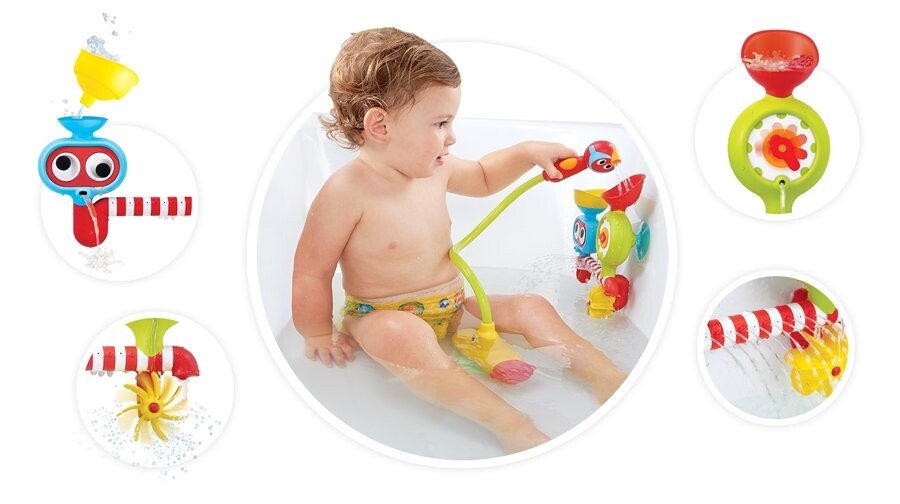 центр активности, прикрепленный к присоскам полна удивительных цепных реакций и различных водных эффектов, благодаря им, помимо развлечения, дети имеют возможность изучить такие понятия, как полная/пустая, медленная/быстрая, левая/правая