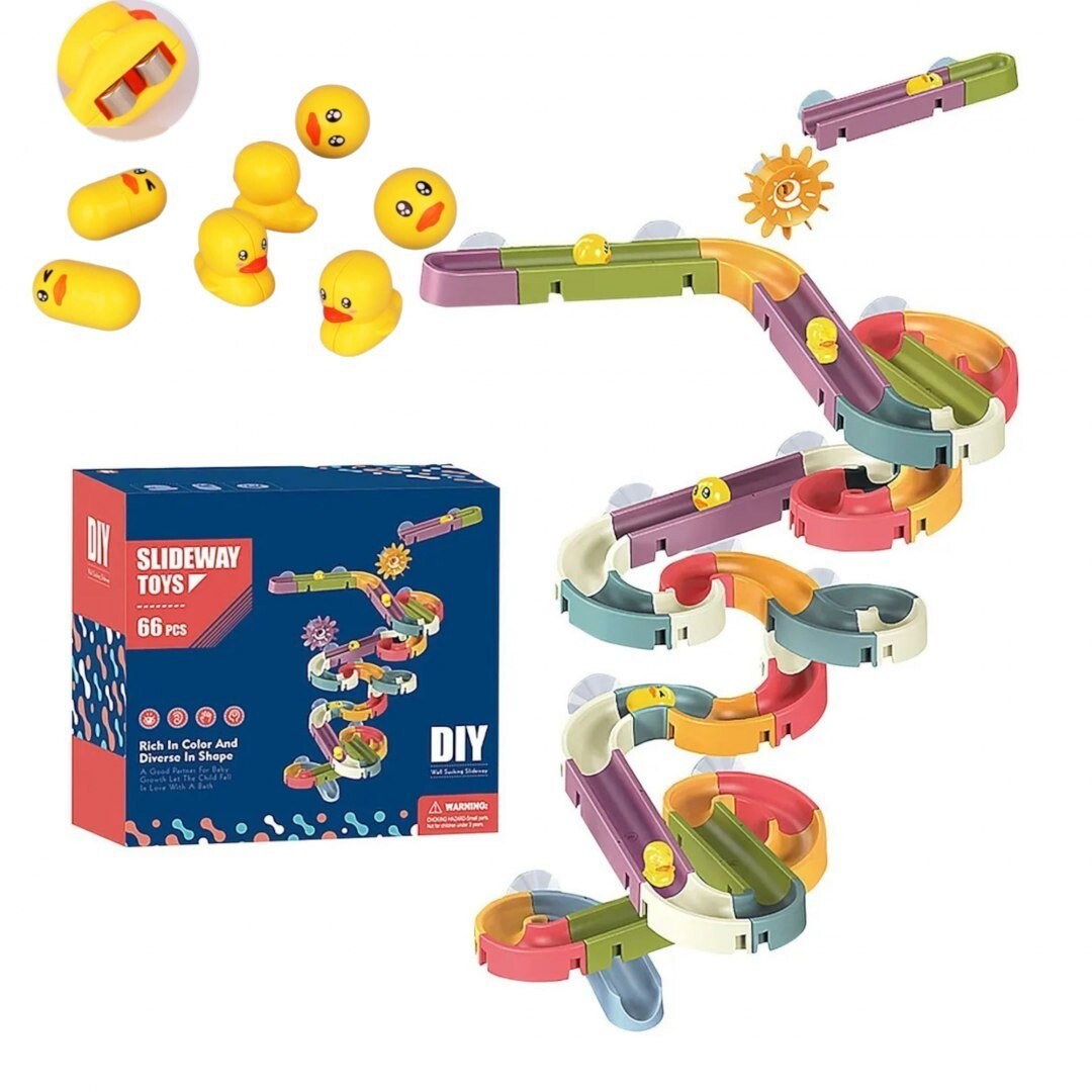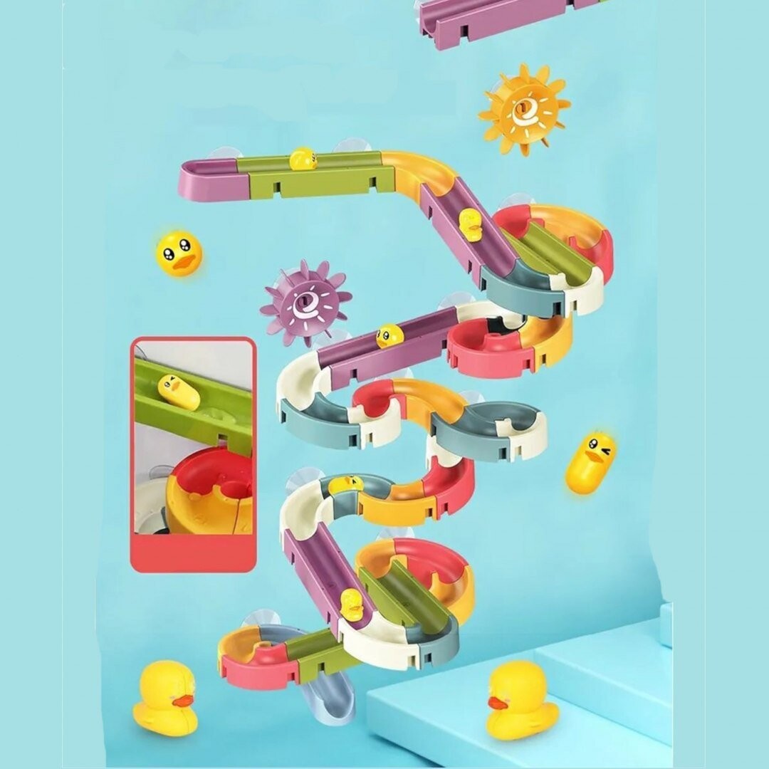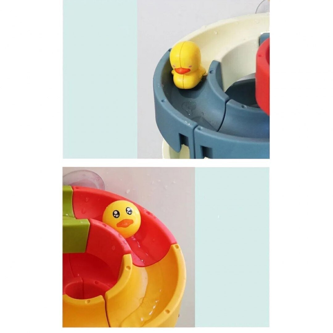 Креативная игрушка для ванны в виде горки с утками – идеальная игрушка, которая сделает купание вашего ребенка более приятным. Набор изготовлен из хорошего, толстого пластика и больших силиконовых присосок, благодаря которым игрушку можно легко прикрепить к стеклу душевой кабины, ванне или плитке. Также рекомендуем патент, которым пользуемся сами – игрушку можно прикрепить к детской ванночке.