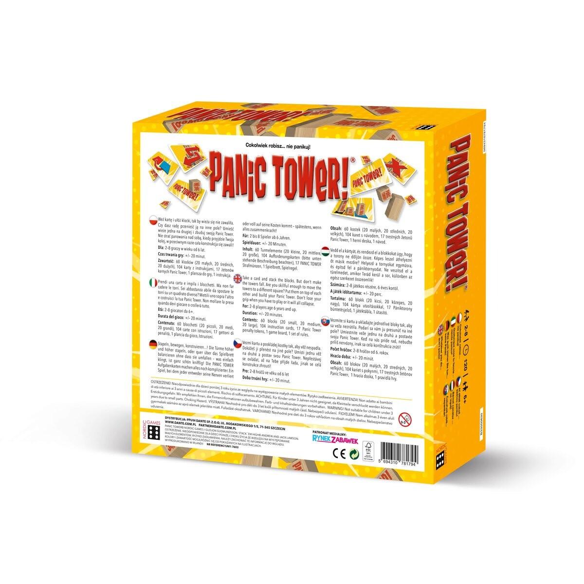 Успех Panic Tower заключается в ее простоте. Игроки строят башню из деревянных блоков на доске, входящей в набор. Участники игры следуют инструкциям карточек. Они строят башню, размещая блоки в вертикальном положении. Цель игры — выполнить случайно выбранное задание и не опрокинуть башню. Это отличная аркада как для взрослых, так и для детей – отличная идея для совместного времяпрепровождения.Правила игрыПравила Panic Tower просты, что делает ее отличной семейной игрой для детей и взрослых. Игроки следуют инструкциям на вытянутых картах, и игру всегда начинает самый младший игрок. Цель Panic Tower — построить высокую башню и безупречно выполнять все команды, взятые с карточек. Развлечение и обучение