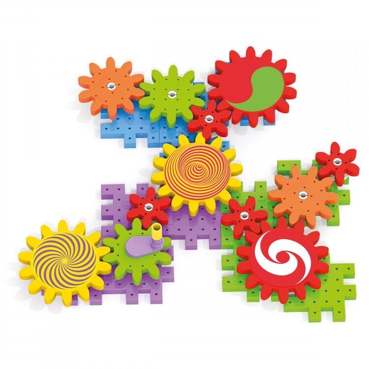 Набор Kaleido Gears позволяет детям изучать причину, следствие и простые принципы механики. Сначала постройте основу, соединив пластины вместе, а затем прикрепите приводы с помощью соединителей, чтобы создать цепную реакцию. Наконец, вы поворачиваете рукоятку, чтобы привести все в движение.