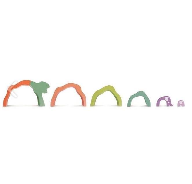 Расстановка кубиков — Сафари — деревянная игрушка для детей от 3 лет и старше. Он позволяет создавать любые сооружения: от простых домов до сложных африканских пейзажей. В наборе 7 элементов: