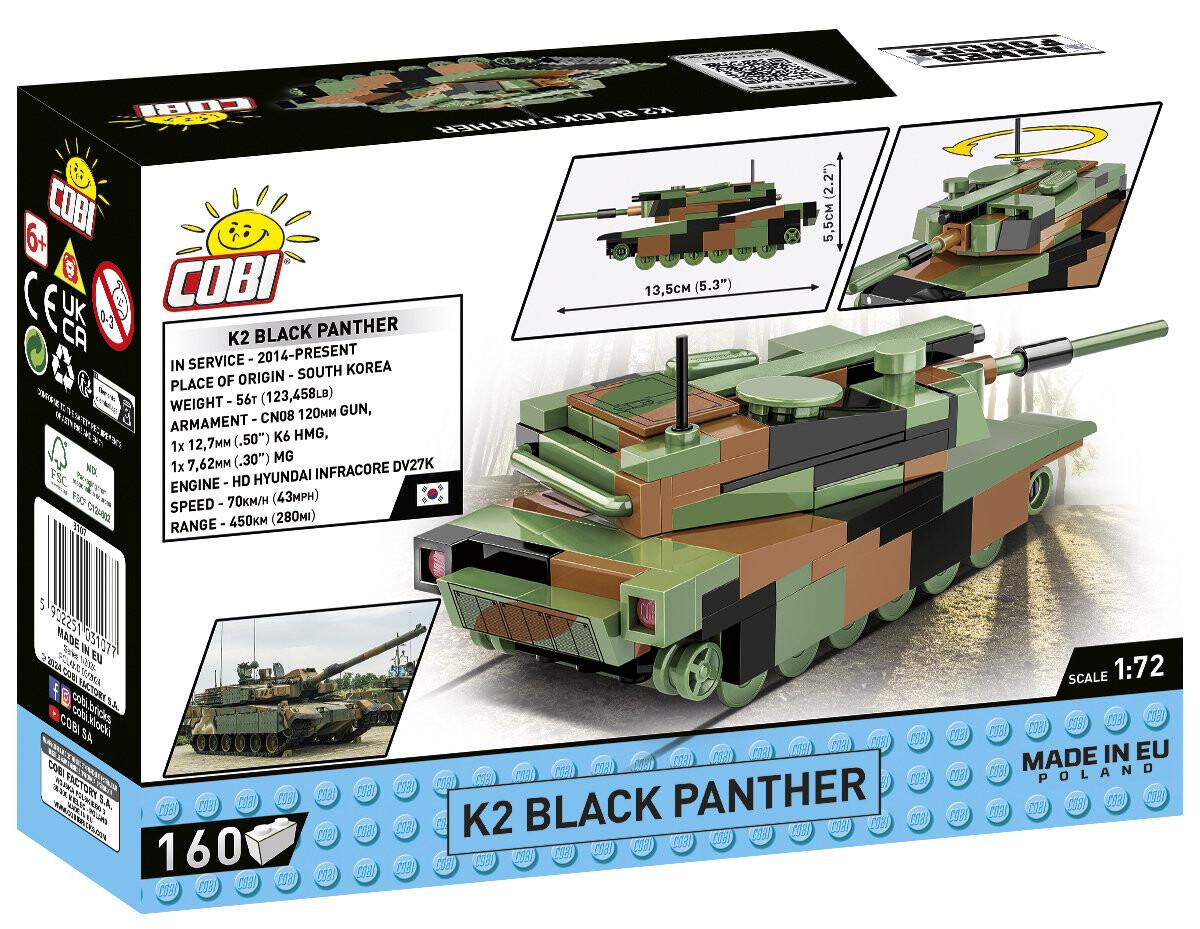 Мини-модель из строительных блоков COBI спроектирована в масштабе 1:72 и состоит из 160 высококачественных элементов. В постройке танк имеет 13 5 см в длину. Несмотря на свои компактные размеры, модель сохраняет все важнейшие черты своего исторического прототипа! Башня танка подвижна и может вращаться.
