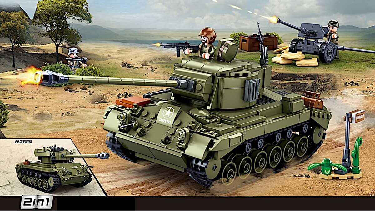 Блоки Танк M26 PERSHING/T26E4-1 Супер ПершингБлоки Танк M26 PERSHING/T26E4-1 Супер Першинг - АМЕРИКАНСКИЙ ТАНК ИЗ ВТОРОЙ МИРОВОЙ ВОЙНЫSluban — известная и признанная марка блоков, Он совместим с другими известными брендами COBI и .