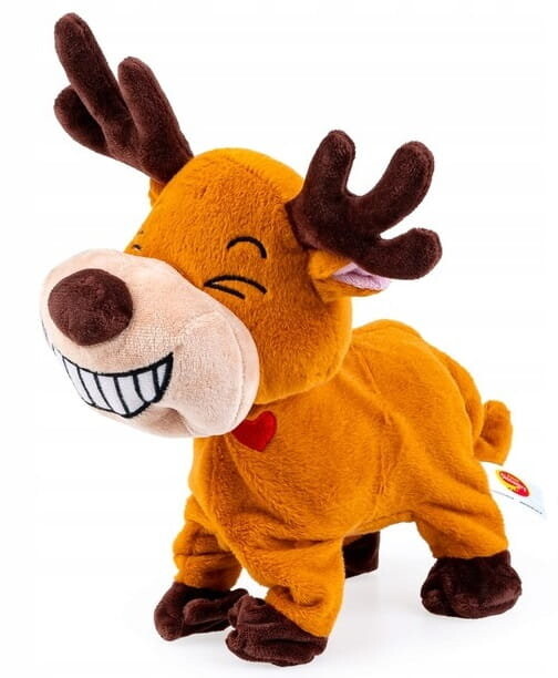 Удовольствие в чистом виде! Очаровательная веселая игрушка разражается смехом, пинает ножками, стоит на двух ножках и делает забавные движения, и все это лишь для того, чтобы рассмешить малыша. Сбоку, под пастью, у животного имеется красное сердечко, отвечающее за активацию игрушки. Посмотрите «смеющиеся» выступления лося и заразитесь его весельем!