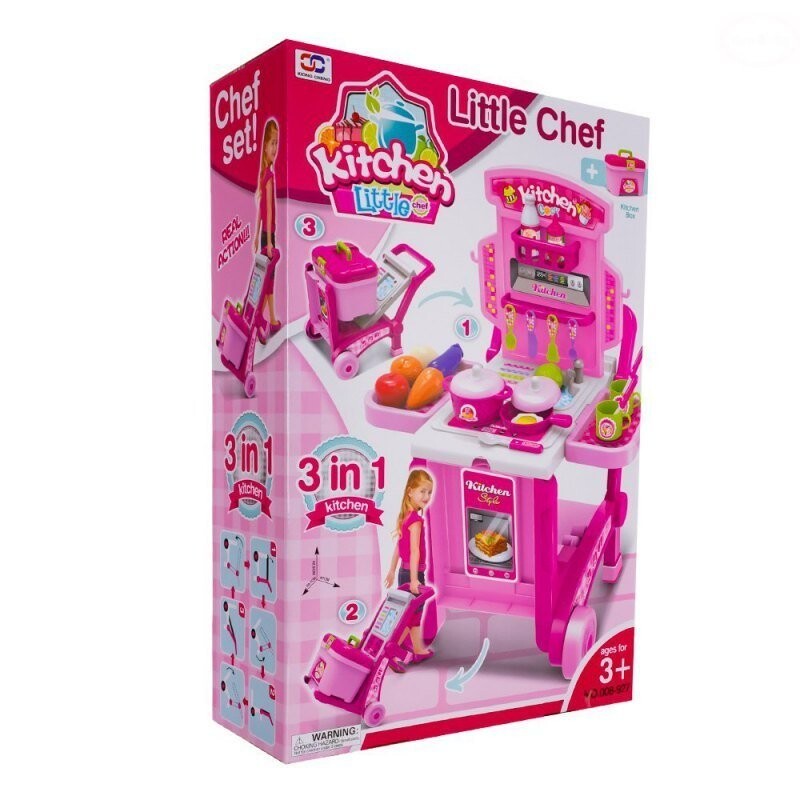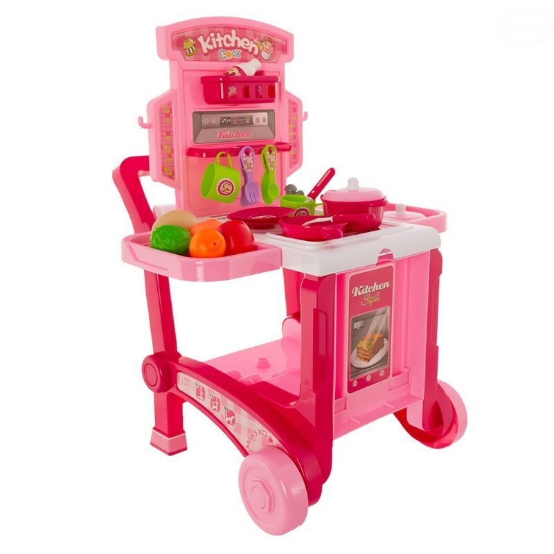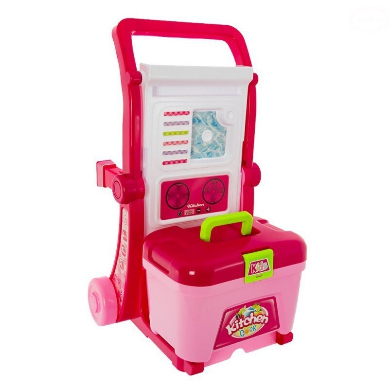 Стол-тележка с багажником – кухня для самых юных поваров. Это подарит вашему ребенку много часов развлечений и разовьет зрительно-моторную координацию и абстрактное мышление. Это позволяет ребенку играть с родителем. В сложенном виде стол можно использовать как тележку. В комплект входит большой кейс, в который можно упаковать все аксессуары.