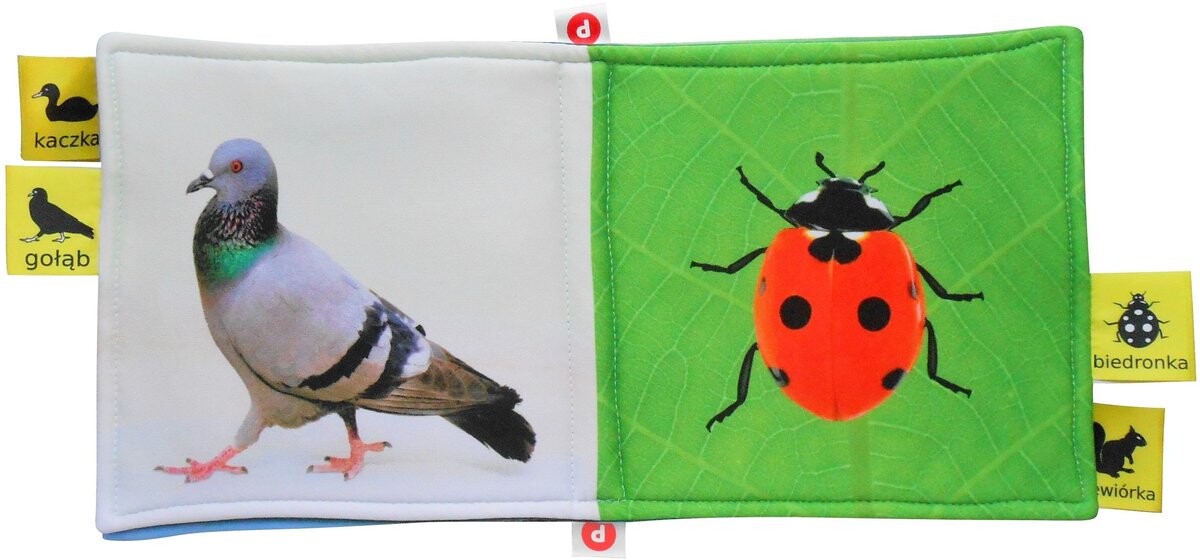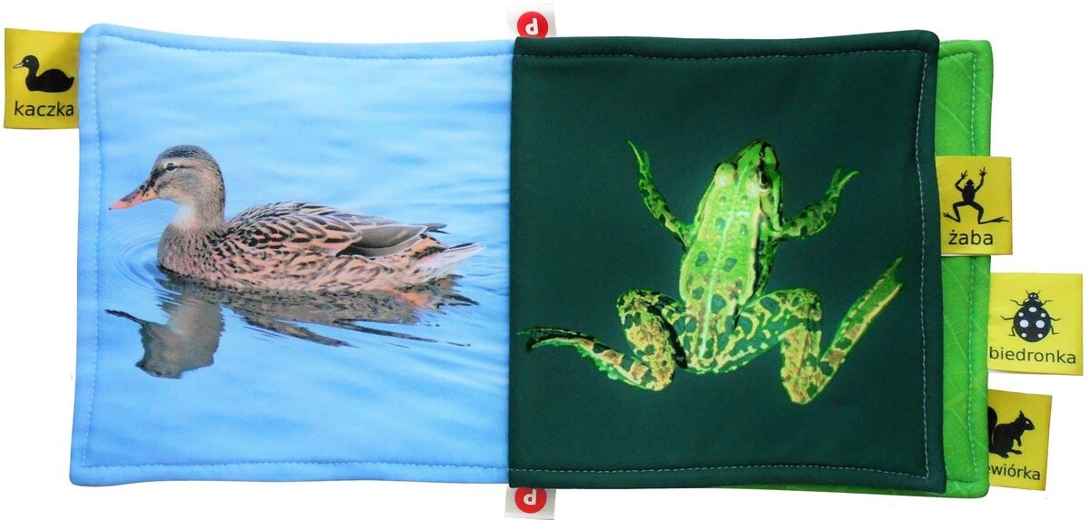 Мягкая книга, разработанная в соответствии с предположениями когнитивной науки и адаптированная к когнитивным способностям младенцев. Из числа часто встречающихся в Польше животных были выбраны фотографии тех, которые были наиболее интересны детям во время тестовых игр.
