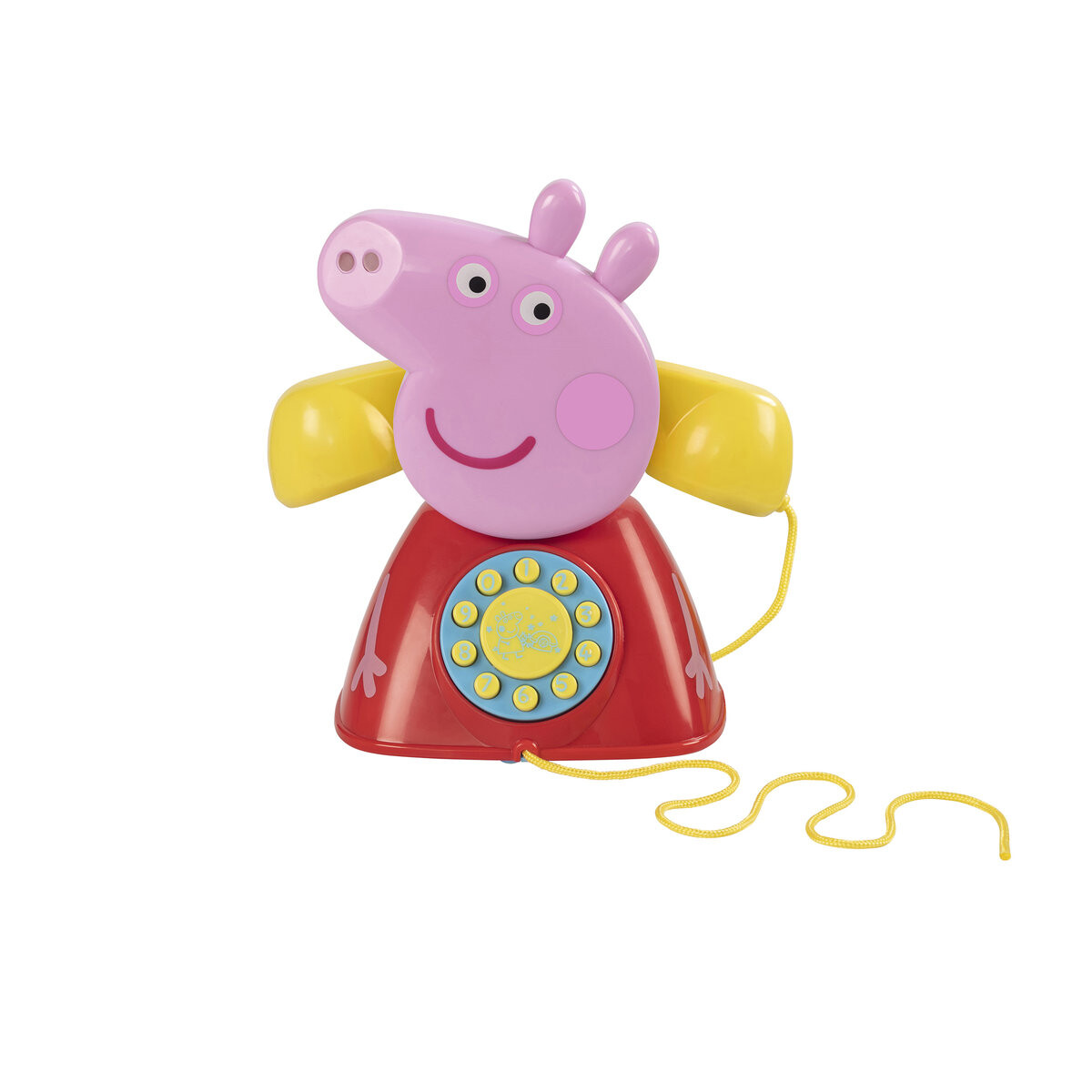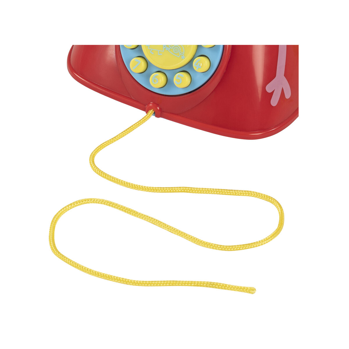 В телефоне есть мелодия звонка и кнопки набора номера с десятью различными тонами клавиш, а также шнур, за который можно тянуть . Когда трубка телефона снята, нажимайте цифры, чтобы услышать фырканье Пеппы. Когда телефон выключен, нажимайте цифры, чтобы услышать хихиканье Пеппы, Сьюзи или визг Ребекки. Также игрушка играет музыкальную тему из мультфильма «Свинка Пеппа».