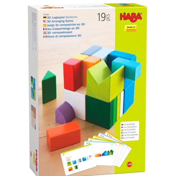 Аркадная игра Haba включает в себя: 19 деревянных блоков и 10 карточек-шаблонов. Прекрасно способствует развитию пространственного воображения и координации движений.