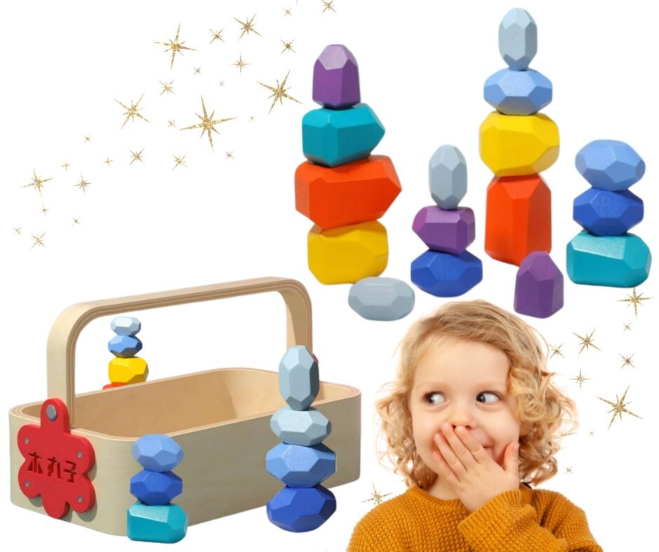 Балансирующие камни Монтессори + наклейки — идеальный подарок для каждого ребенка, который любит строить и эксперимент. Игра развивает не только ручные навыки, но также воображение и когнитивные способности.
