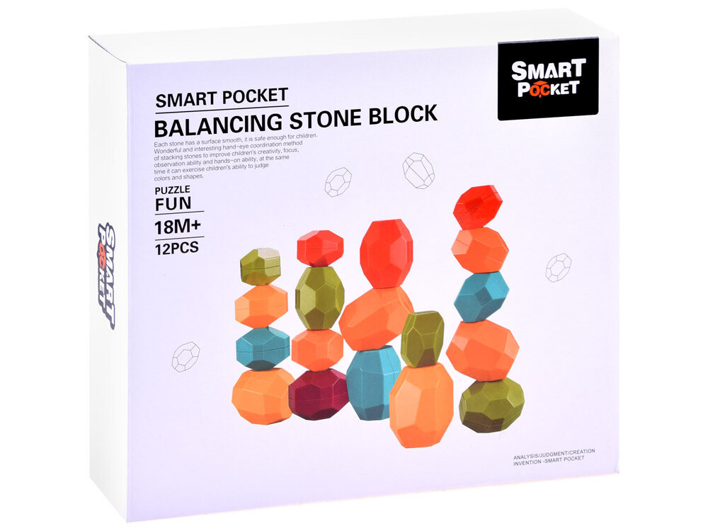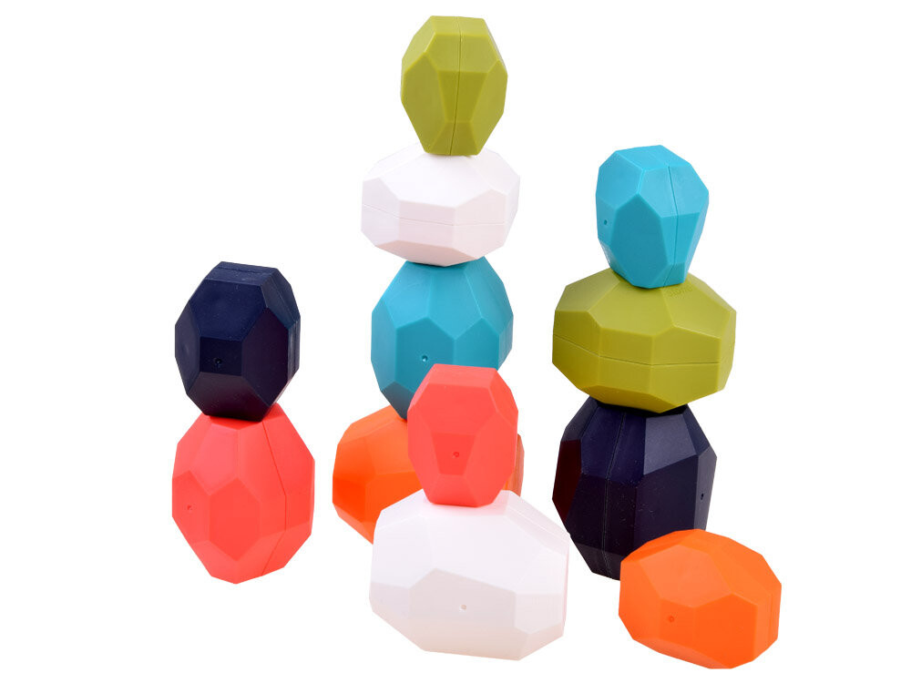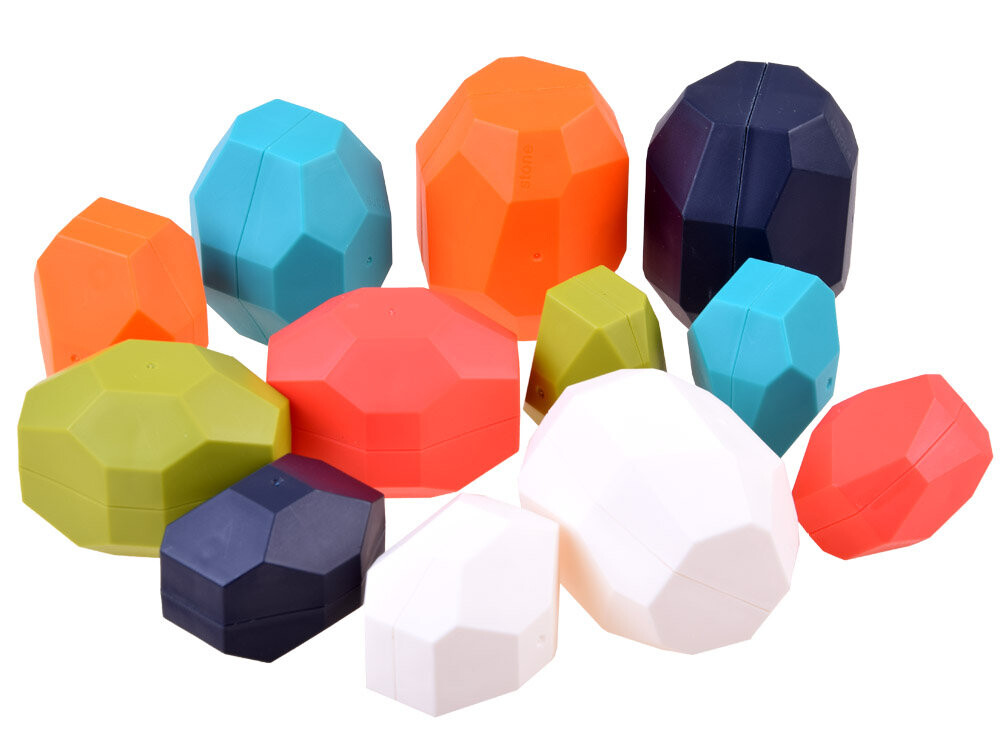 В набор входят 12 камнейразных размеров, форм и цветов. Блоки изготовлены из высококачественного пластика.