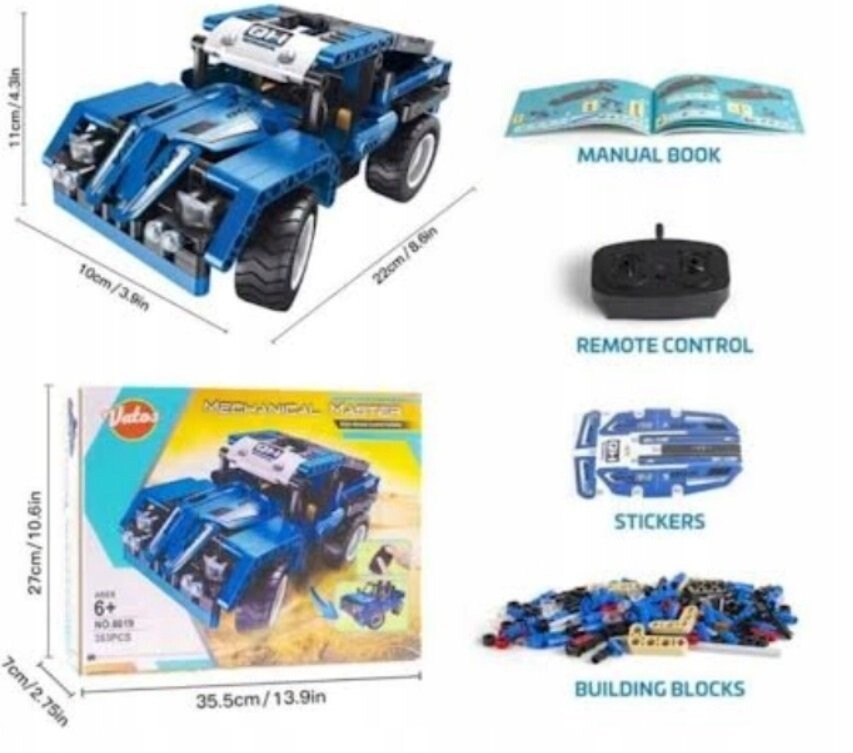 Он позволяет построить две разные модели автомобилей. Это отличный способ развития детского мануального мастерства и воображения, а также отличное развлечение для каждого маленького автолюбителя. Соберите машину и наслаждайтесь весельем, управляя транспортным средством с помощью пульта дистанционного управления.