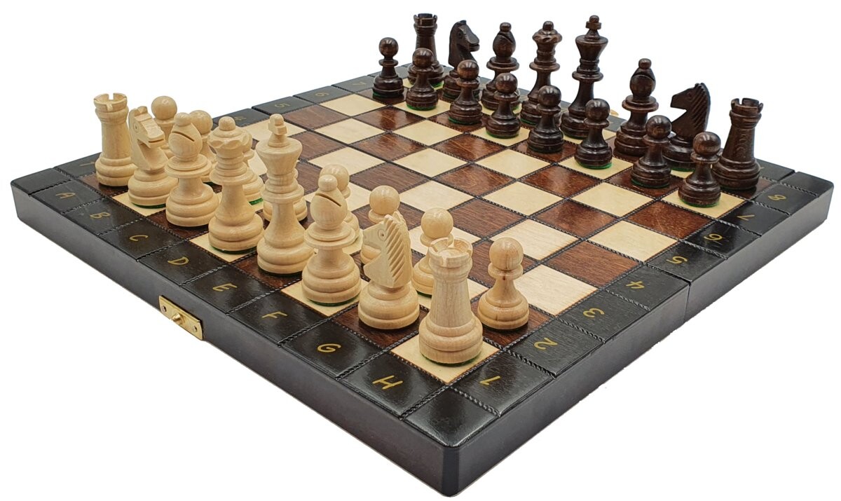 В КОМПЛЕКТ ВХОДЯТ: СКЛАДНАЯ ШАХМАТНАЯ ДОСКА: 29х29 см, 32 ШАХМАТНЫЕ ФИГУРКИ, КАРТОННАЯ КОРОБКА.