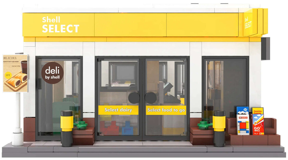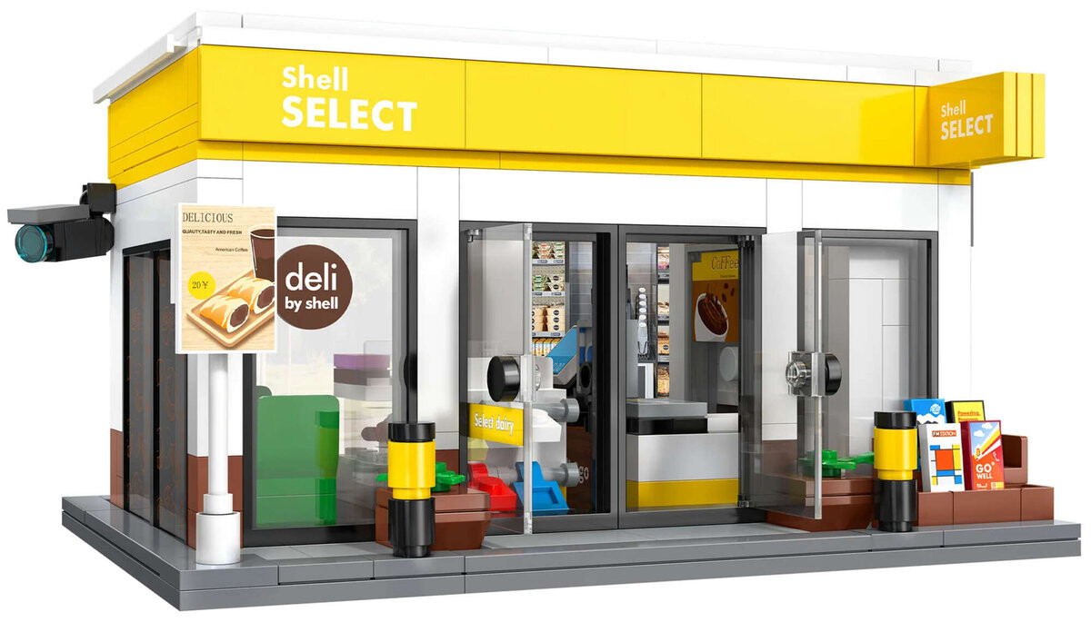 Набор состоит из 303 элементов и позволяет самостоятельно собрать небольшой магазин Shell.