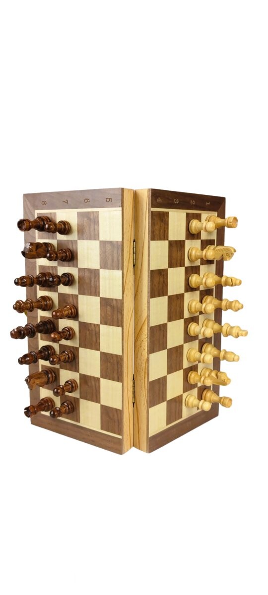Деревянные магнитные шахматы премиум-класса — это не только игра, но и элегантное произведение искусства, подчеркивающее уникальность каждой игры. Каждая фигурка изготовлена из дерева высочайшего качества, что придает им уникальный, роскошный вид. Надежное качество изготовления гарантирует долговечность и стабильность во время игры. Магнитные элементы делают фигурку фигуры идеально прилегают к шахматной доске, обеспечивая уверенные движения. Размеры 39 см х 39 см