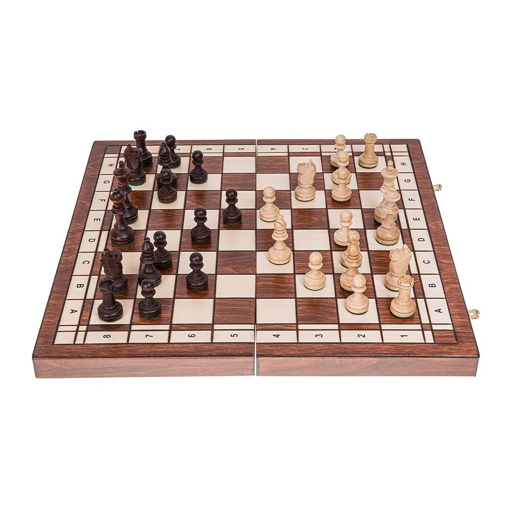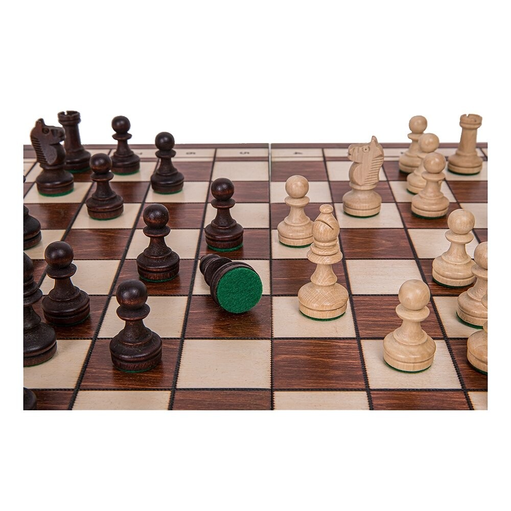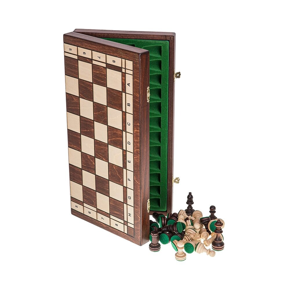 Турнирные шахматы №4 КлассикаШахматная доска ручной работы из древесины бука/березыПолуглянцевая лакированная, центр заполнен элегантной вставкойРазмеры кассеты Размер: 410 х 410 ммПосле сборки 410 х 205 х 50 ммФигурки выточены из граба, покрыты лаком, обклеены фетромВысота короля: ок. 76 мм - Стонтон 4В нижней части фигур используются гири для улучшения устойчивости на шахматной доске