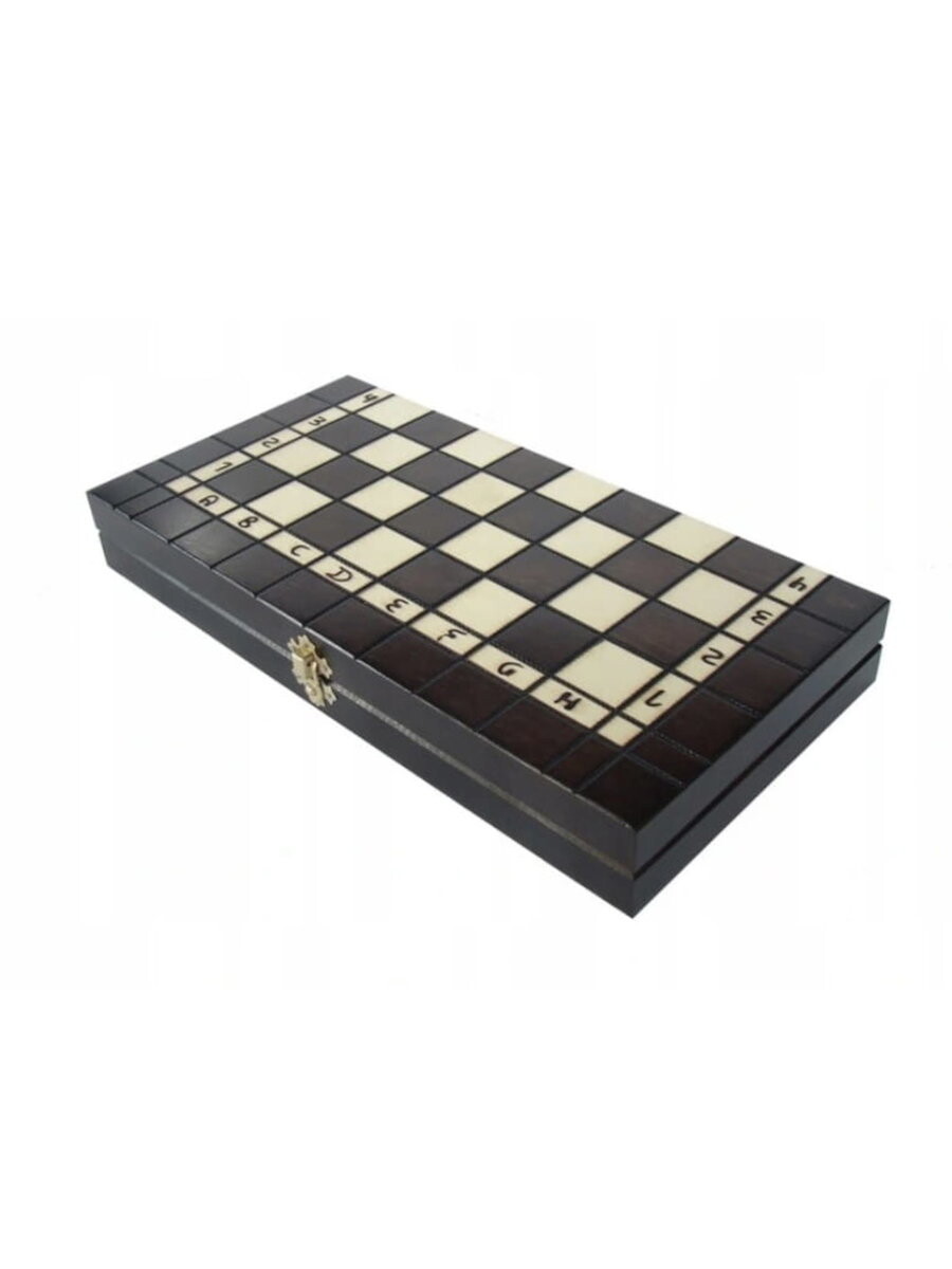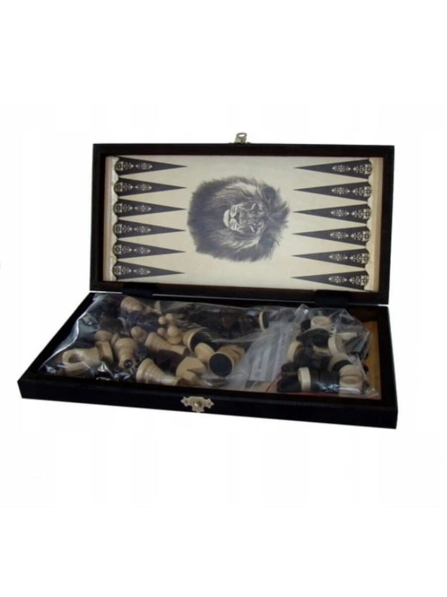 Набор шахмат из дерева, покрытых полуглянцевым лаком.