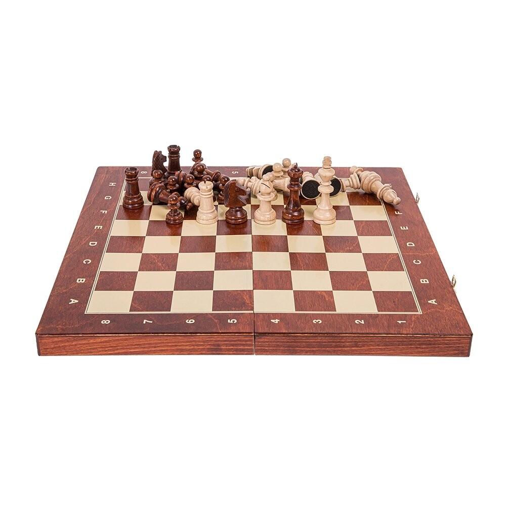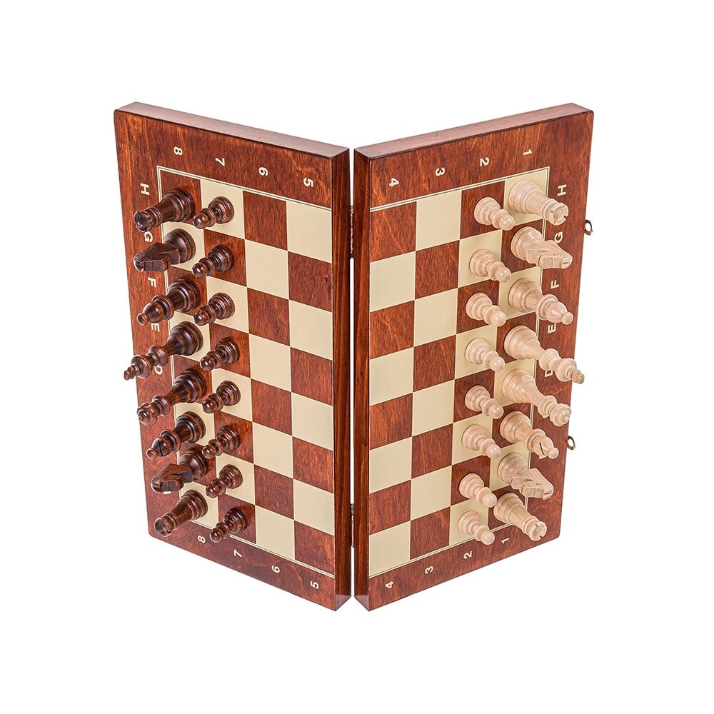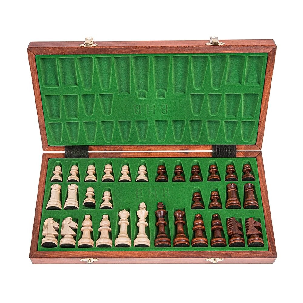 Набор магнитных шахмат - Staunton 4Шахматная доска ручной работы из древесины букаПолуглянцевый лак, центр заполнен элегантной вставкой для фигур Шахматная доска на кассете - печать кремового цветаРазмеры кассеты: 375 х 375 ммПосле сборки 375 х 187 х 47 ммФигурки из граба - токарные, лакированные, обклеенные фетромВысота фигурок: король 76 ммФигурки нагружены магнитом, предотвращающим их скольжение по шахматной доске