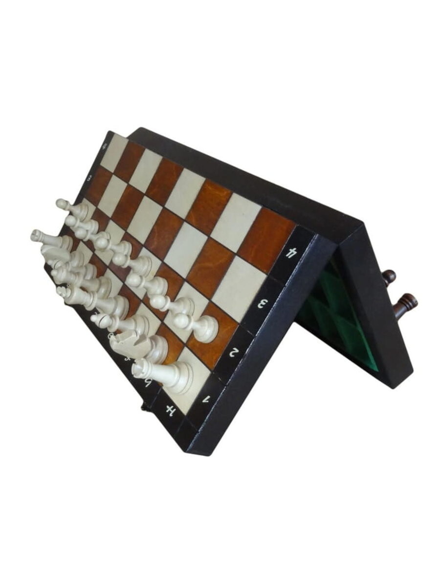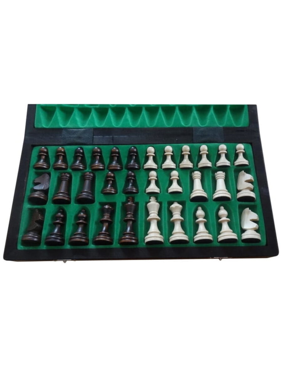 Элегантная вставка для фигур, фигуры нагружаются магнитом, предотвращающим их скольжение по шахматной доске. .