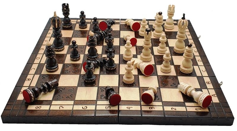 В КОМПЛЕКТ ВХОДЯТ: СКЛАДНАЯ ШАХМАТНАЯ ДОСКА РАЗМЕР ШАХМАТНОЙ ДОСКИ 60см x 60см ШАХМАТНЫЕ ФИГУРКИ 32 ШАХМАТЫ КАРТОННАЯ КОРОБКА
