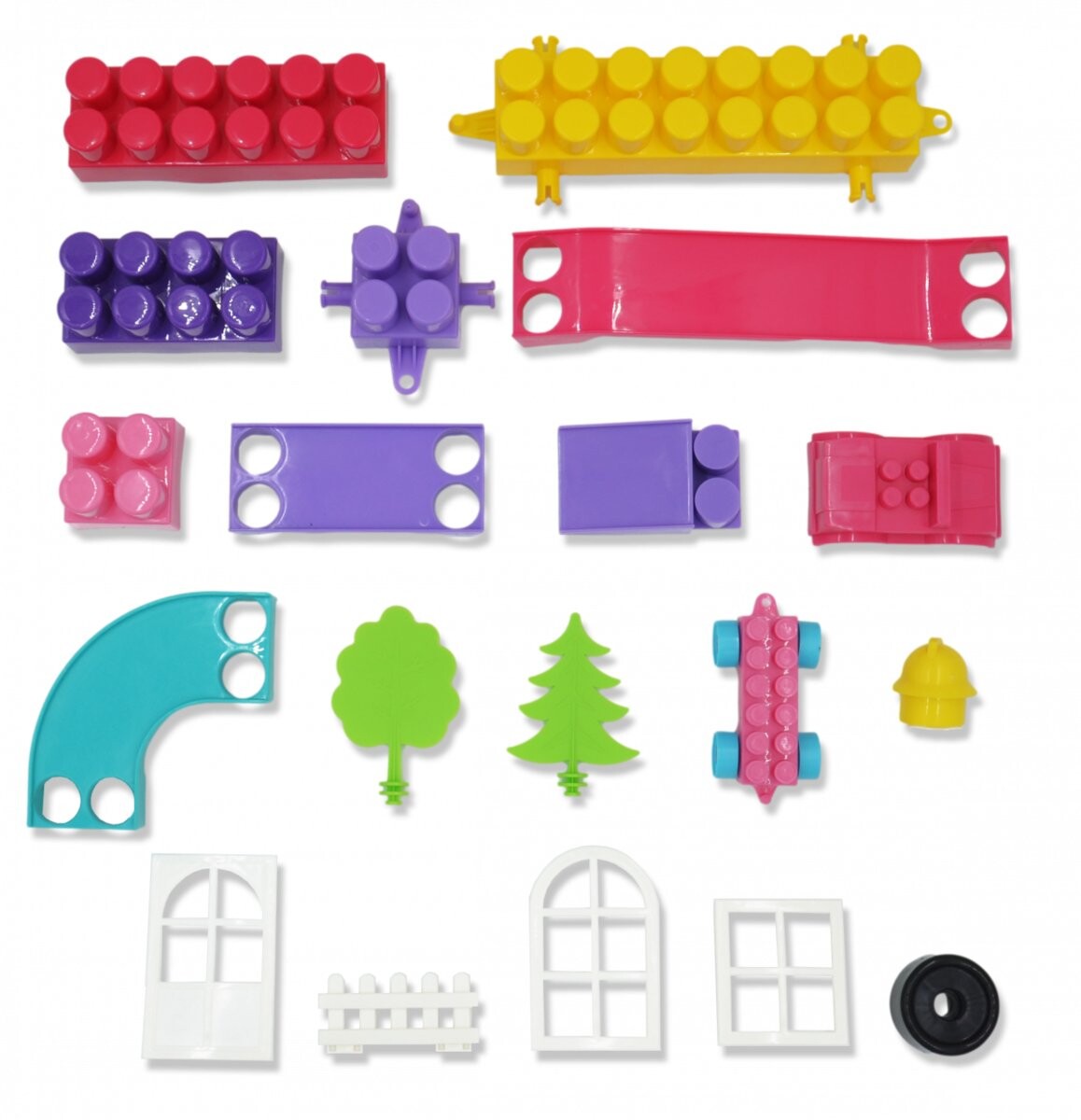 Набор состоит из 133 элементов красивых девичьих цветов. Помимо стандартных блоков в набор входят такие элементы как: горки, машинки, барьеры. деревья или окна. Такой богатый набор станет отличным приключением! Ребенок может построить все, что захочет – домик, замок для своих кукол или башню. У такого набора много возможностей.Почему стоит купить такой набор?