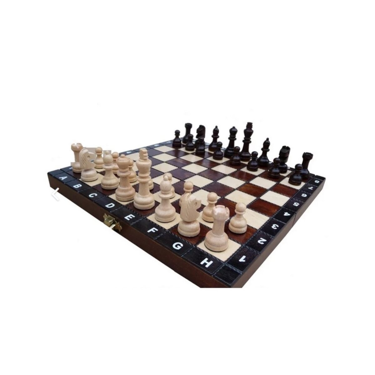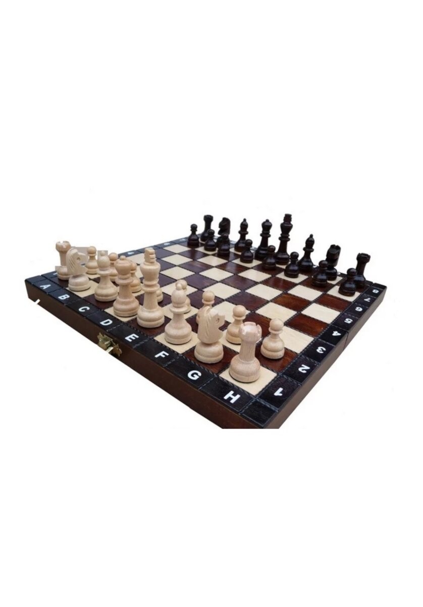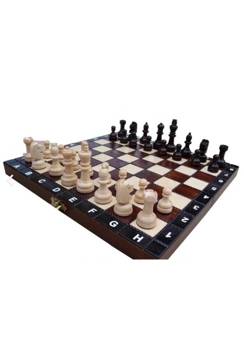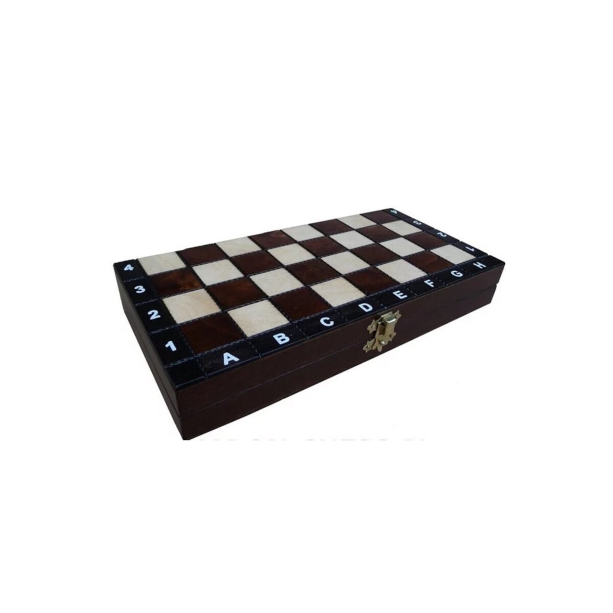 Шахматы из дерева. Размер корпуса: 270 х 270 х 20 мм. (в сложенном виде: 270 х 135 х 40 мм.) Высота короля: 60 мм. Вес: 0,5 кг.