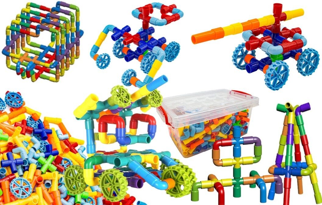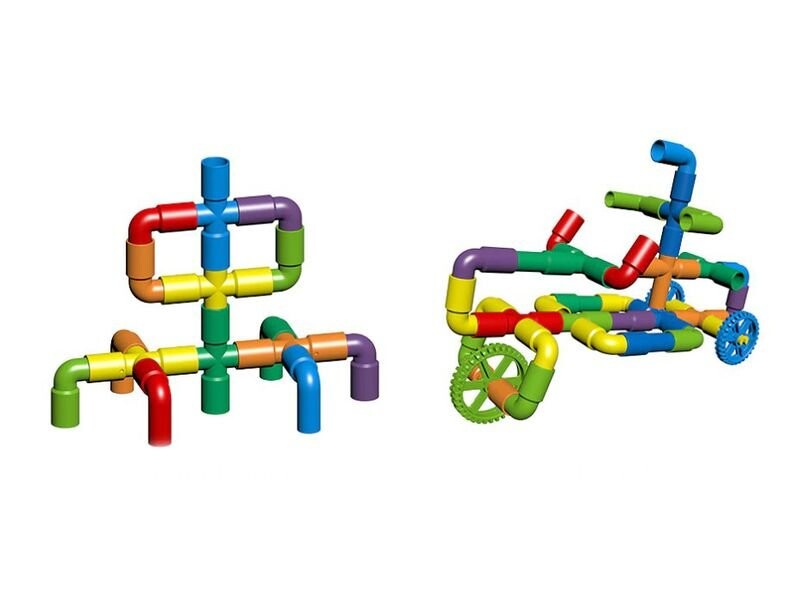 Разноцветные строительные блоки трубопроводов позволяют строить не только транспортные средства, но и машины, здания и многие другие творческие проекты.