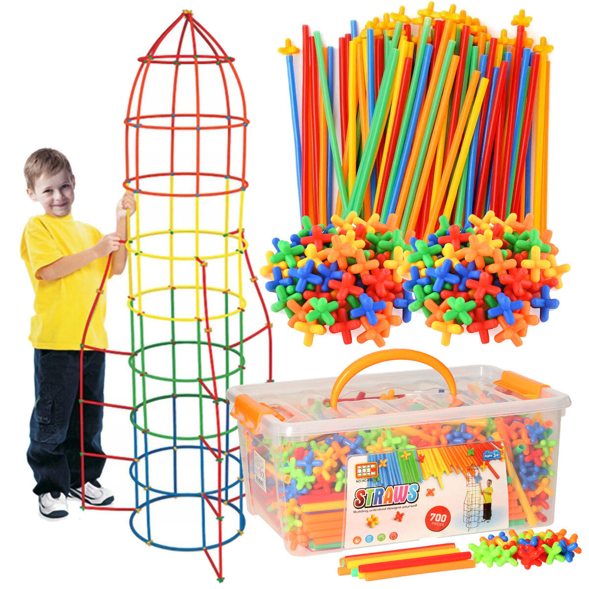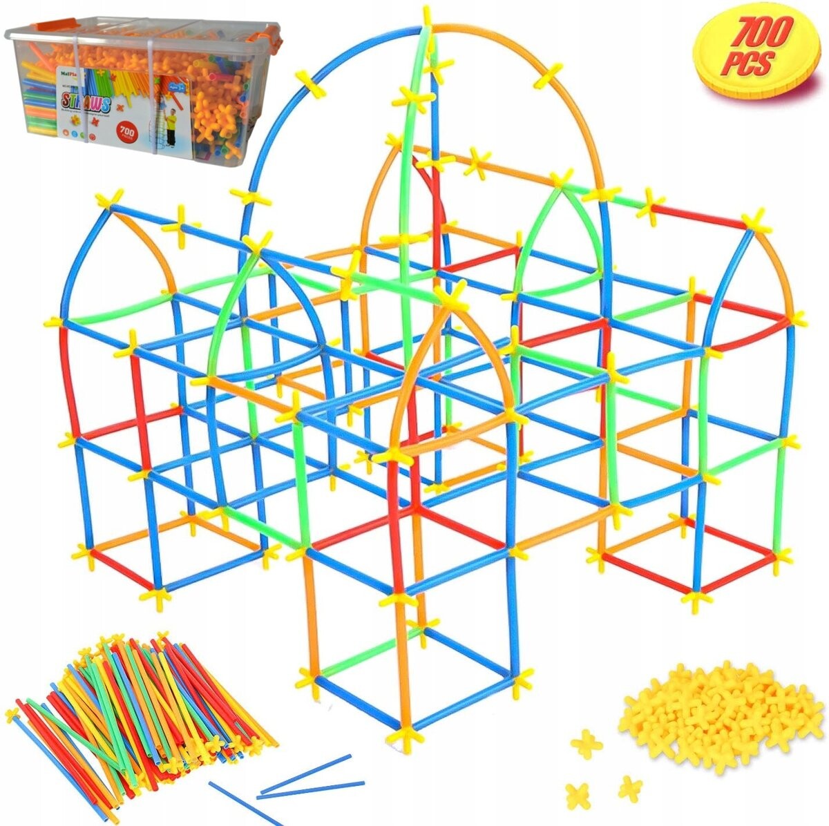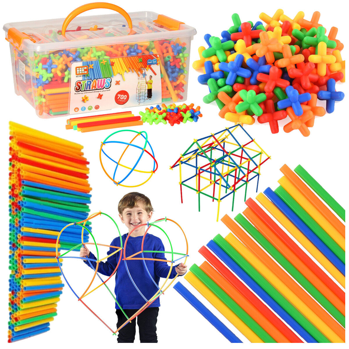 Наилучшее оригинальное качество изготовления. В комплект входят короткие и длинные цветные соломинки и соединители-звездочки. Все это помещено в практичный ящик для хранения, закрывающийся застежками. Чтобы упростить игру, вы можете использовать красочные иллюстрации с примерами построек. Особенности и преимущества набора: