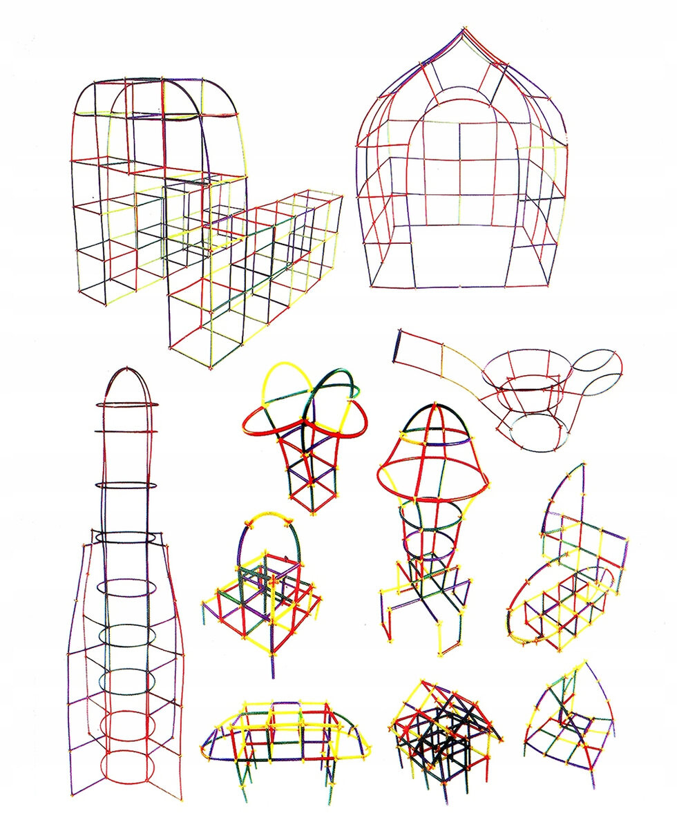 Последняя серия строительных палочек представляет собой пространственную головоломку, состоящую из пластиковых разноцветных трубочек и специальных соединителей в эстетичной упаковке. Его используют для построения различных пространственных конструкций.