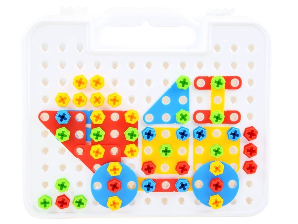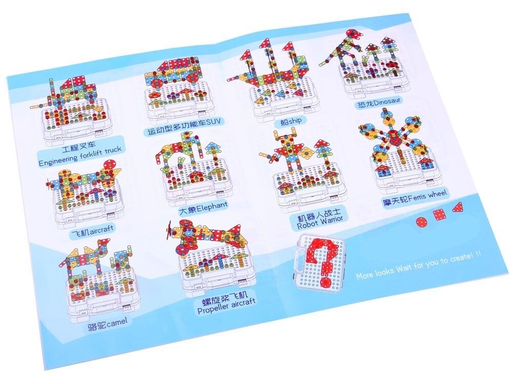 Большой обучающий набор строительных блоков, предназначенный для маленьких любителей DIY. Набор состоит из 268 элементов, упакованных в удобный пластиковый чемодан. Вы можете использовать блоки для создания различных инсталляций, 3D-зданий, машин и т. д.