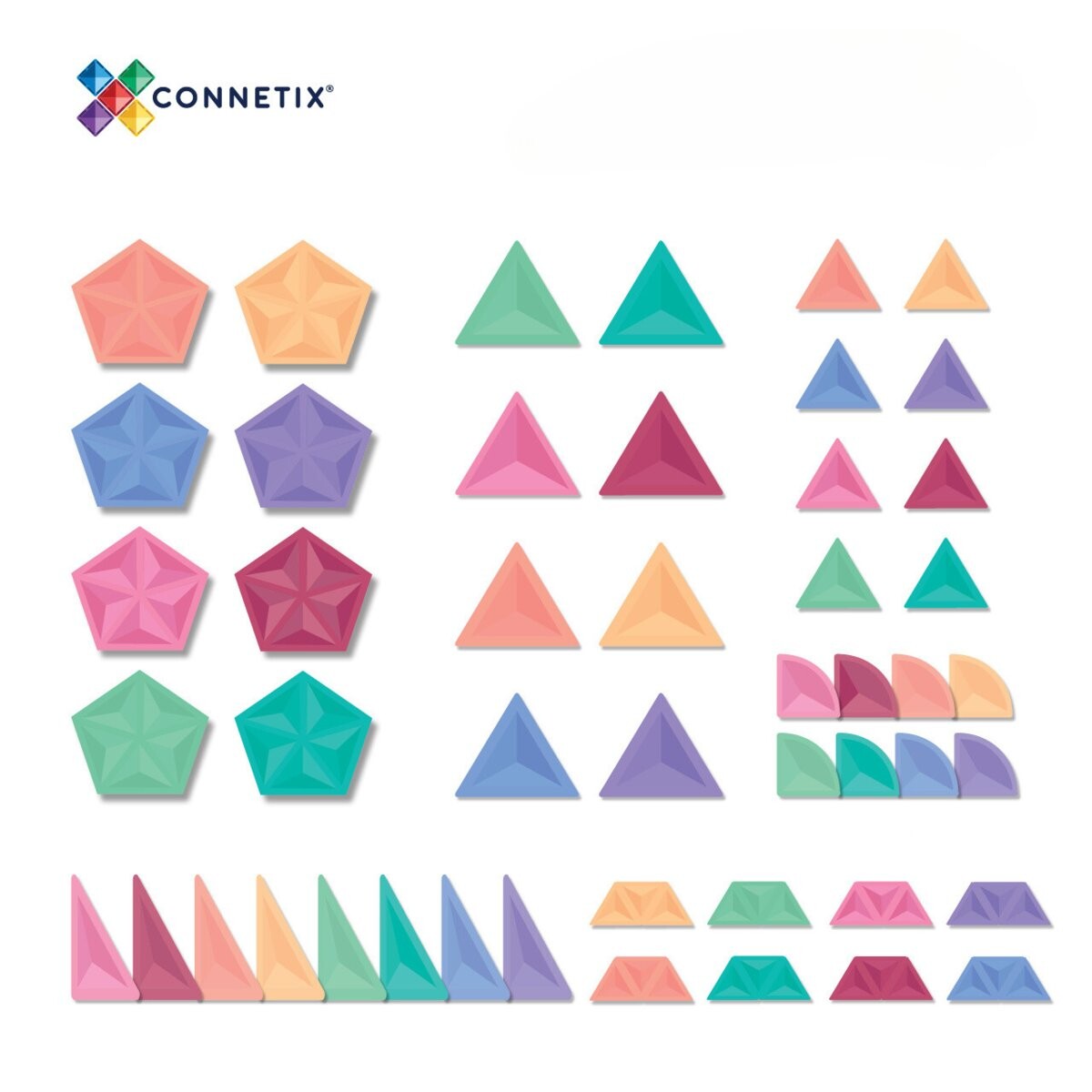 Набор магнитных строительных блоков Pastel Shape Expansion Pack из 48 предметов содержит уникальный набор элементов, недоступный ни в одном другом наборе Connetix.
