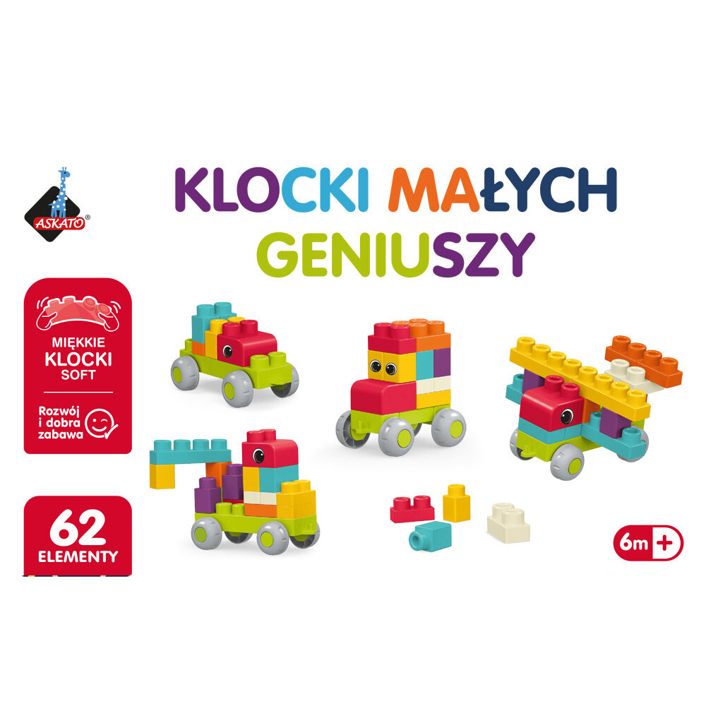 В наборе 62 элемента, в том числе 10 колес, благодаря которым можно также собирать транспортные средства.