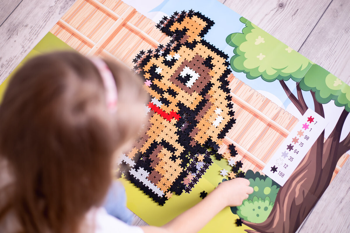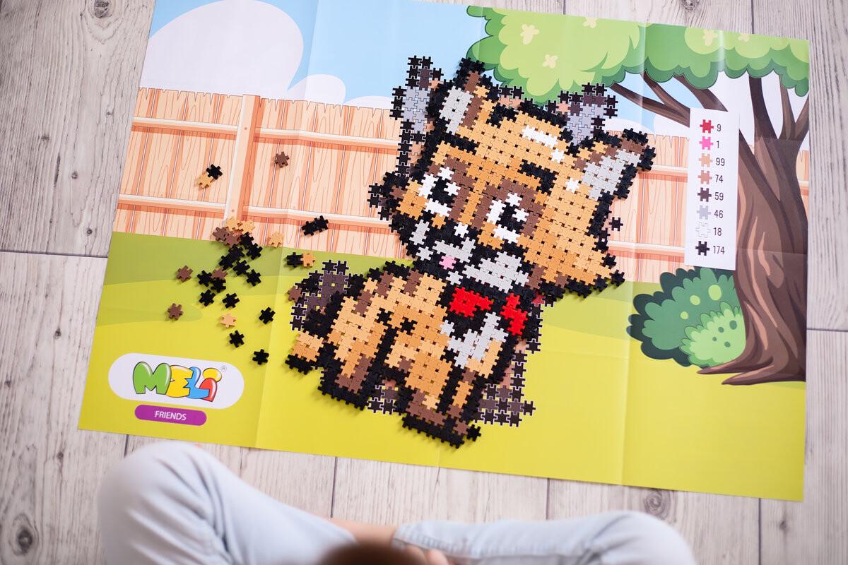 Каждый ребенок мечтает о четвероногом друге. Игривые щенки и очаровательные котята – радость для всей семьи. Вот наши милые питомцы! В набор «Друзья» входят: коричневая собачка с красным ошейником и котёнок такого же цвета, украшенный лентой. Ваш малыш будет весело проводить время с пушистыми малышами, расставляя животных на досках с графикой, чтобы воссоздать их, или воплощать в жизнь своих любимцев в соответствии со своими собственными идеями. И в нем целых 500 элементов для отличного развлечения с новыми друзьями!