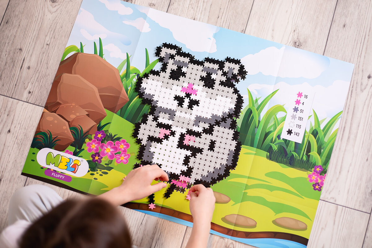 Пусть эти милые пушистые зверьки навсегда поселятся у вас дома! Зайка с длинными ушками и хомяк с пухлыми щечками ждут игривое развлечение вместе с вашим ребенком! Малышам, которые любят пушистых созданий, мы гарантируем массу удовольствия от сборки набора «Пушистик». Это 500 элементов, в которых преобладают оттенки пепельного, белого и розового. Блоки доставляют удовольствие от творчества в соответствии с предложениями, представленными на досках с воспроизводимой графикой, и позволяют собирать собственные композиции!